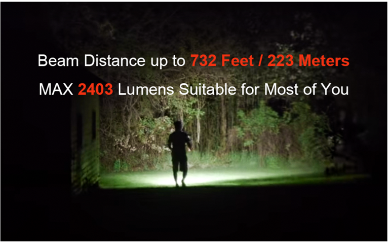 • EXTREME OUTPUT: Powered by a CREE XHP 35.2 LED the TC15 V3 produces up to 2403 lumens with a beam distance of 731 ft / 223 m. Please Screw Down The Light head tightly Before Using