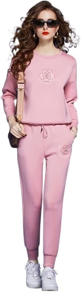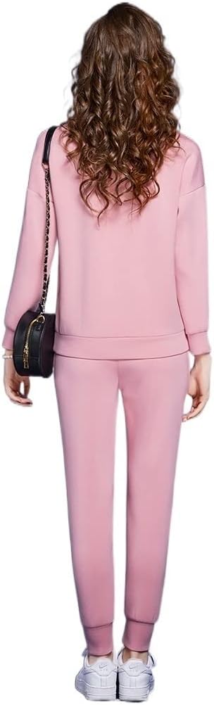 n/a Autumn Casual Sporty Pants Sets 2 Pieces Womens Outfits Winter Fashion Long Sleeve Hoodies Sweatshirt Trousers Suits Pink (Color : Pink, Size : XL Code)