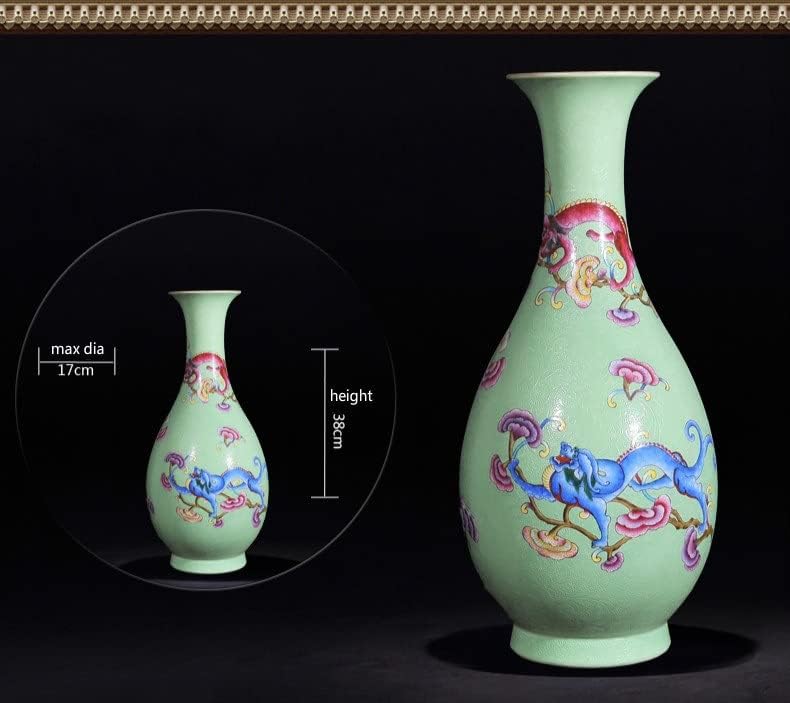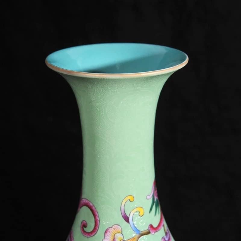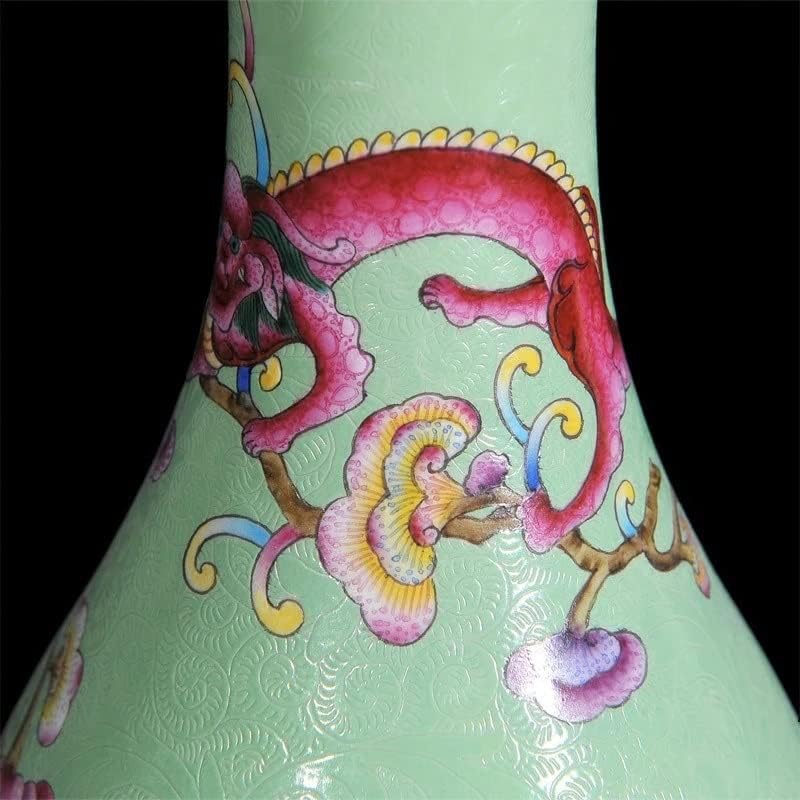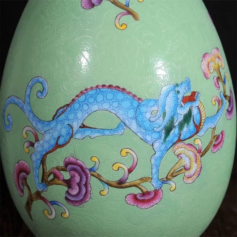 HOUKAI Chinese Style Antique Handmade Green Ceramic Flower Vase Collection Jingdezhen Porcelain Dragon Decoration Vase