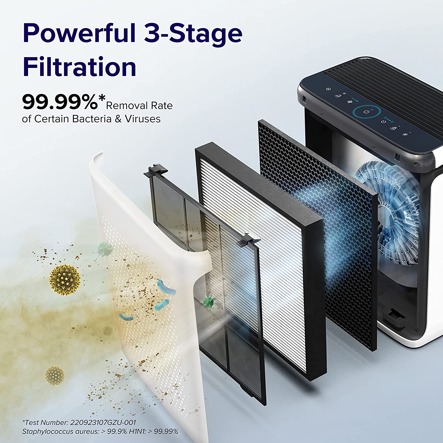 • RIGOROUS VIRUS TEST: The capacity of removing viruses is reliable because the data are approved by an authoritative detection mechanism. The third part report number is 220923107GZU-001