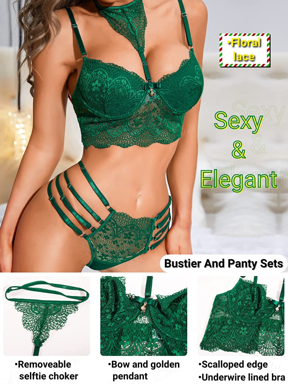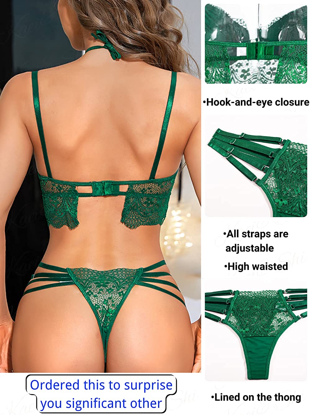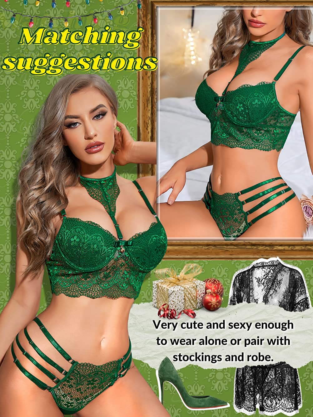 ✿Design: Lingerie set with high waisted lace thong bottom will highlight your waist line. Hook & eye back closure and adjustable straps make it easy for wearing.