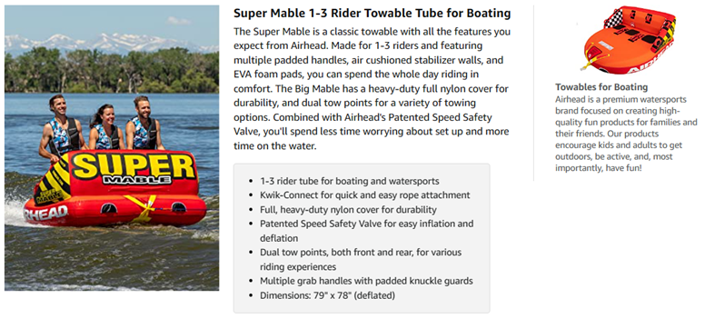 Airhead Super Mable, 1-3 Rider Towable Tube for Boating