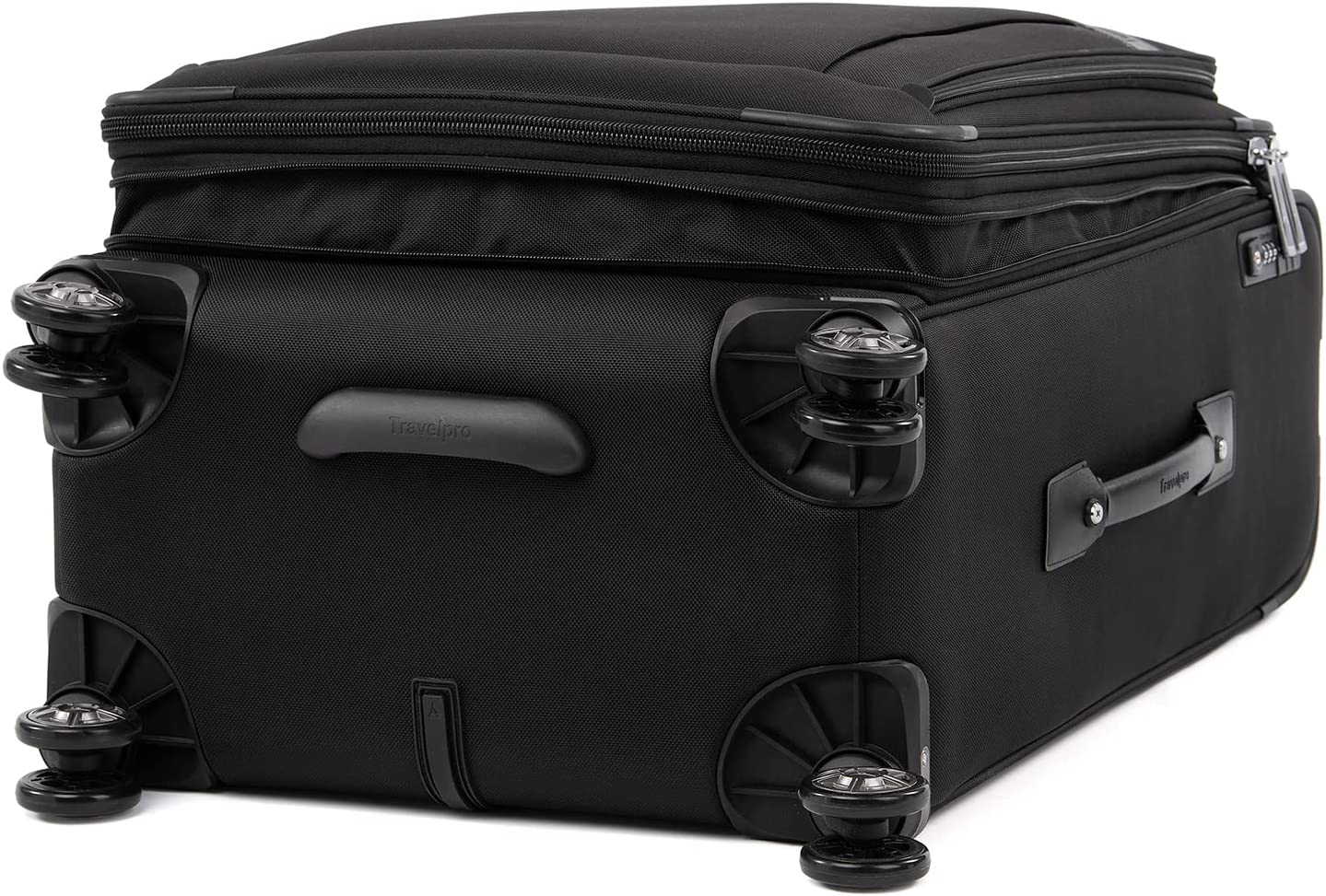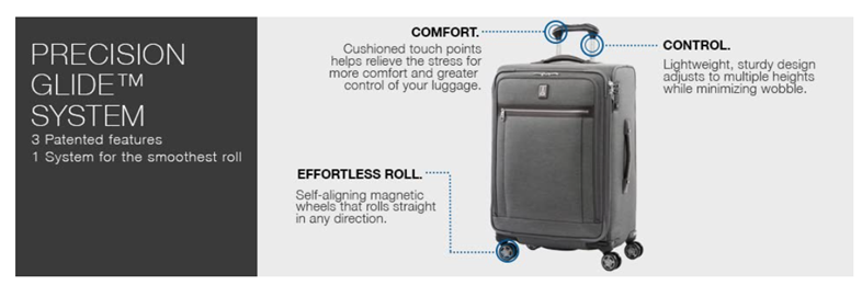 Finally, great looking checked luggage that is as functional and durable as it is stylish. The Platinum Elite 25" Expandable Spinner is perfect for medium and long trips, accommodating everything you need, guarding against wrinkles with a built-in suiter and keeping everything organized under a deluxe tie-down system with integrated accessory pockets. Constructed with premium fabrics, leather accents and chrome zippers, this gorgeous bag also features a tip-resistant tapered expansion option that provides up to 2" additional packing capacity. Integrated lock allows TSA authorities to safely unlock and lock suitcase for inspection when needed (default lock code is 0-0-0 to open). For effortless mobility, this 25" suitcase is equipped with our Precision Glide system-eight MagnaTrac, self-aligning, 360-degree spinner wheels guided by an adjustable PowerScope extension handle with patented Contour Grip and rubberized touch points, ergonomically designed to be easy on the hands. Backed by Travelpro built for a lifetime limited warranty with our trusted companion promise which covers the cost of repair for damage from airline or other common carrier for 1 year.