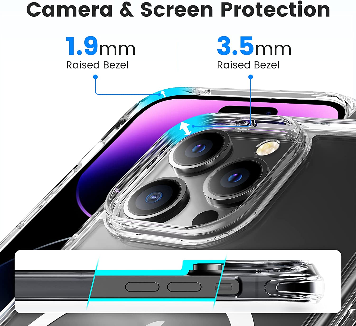 • [Military Grade Drop Protection]:There are camera lens protective lips raised 3.53mm on the back that prevent the screen and camera from drops & scratches and provide extra careful protection