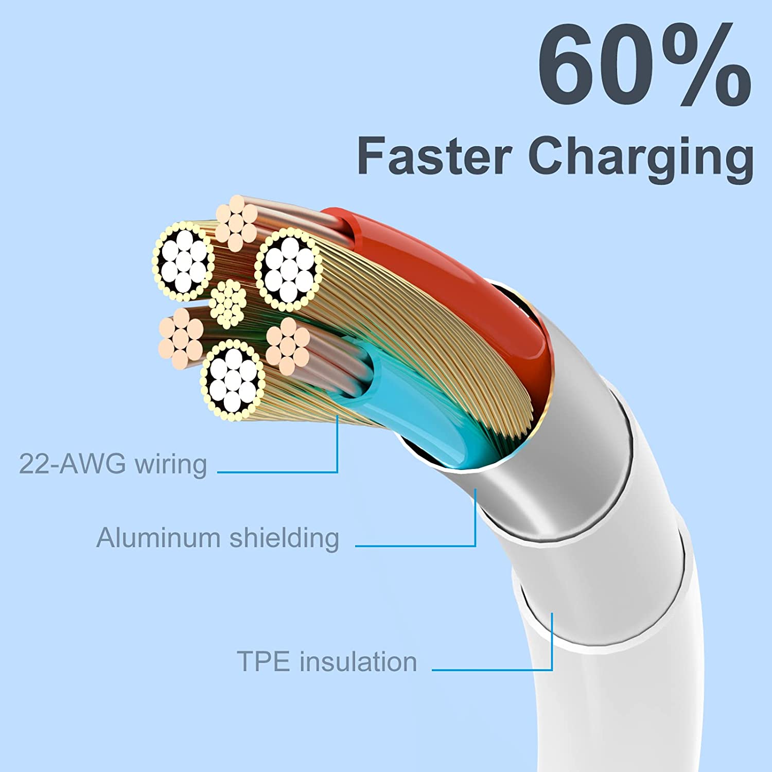 • Incredible Charging Speed: Wide-diameter wires and reduced cord resistance maximize charging speed (supports up to 2.4 amps charging current).