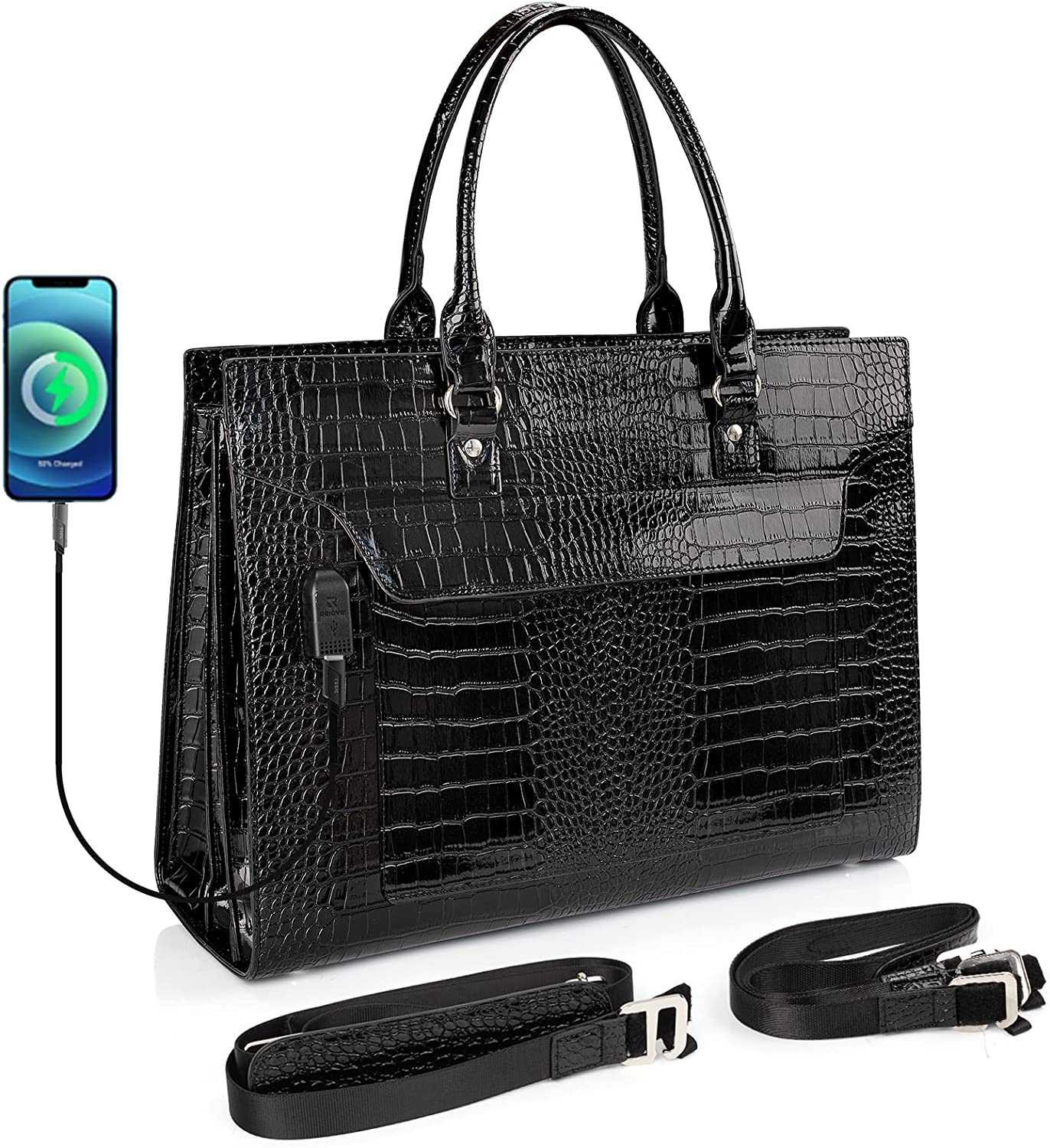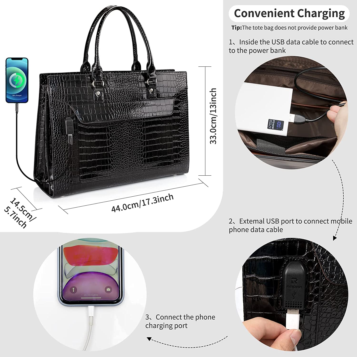• 【Portable】Laptop bag for women, external USB charging port and built in charging cable, offers you a convenient way to charge your phone while walking. Keychain strap inside laptop tote bag can help get your keys easily when opening door without taking off it, save your time. Please noted: Computer tote bag doesn't power itself, USB charging port only offer an easy access to charge.