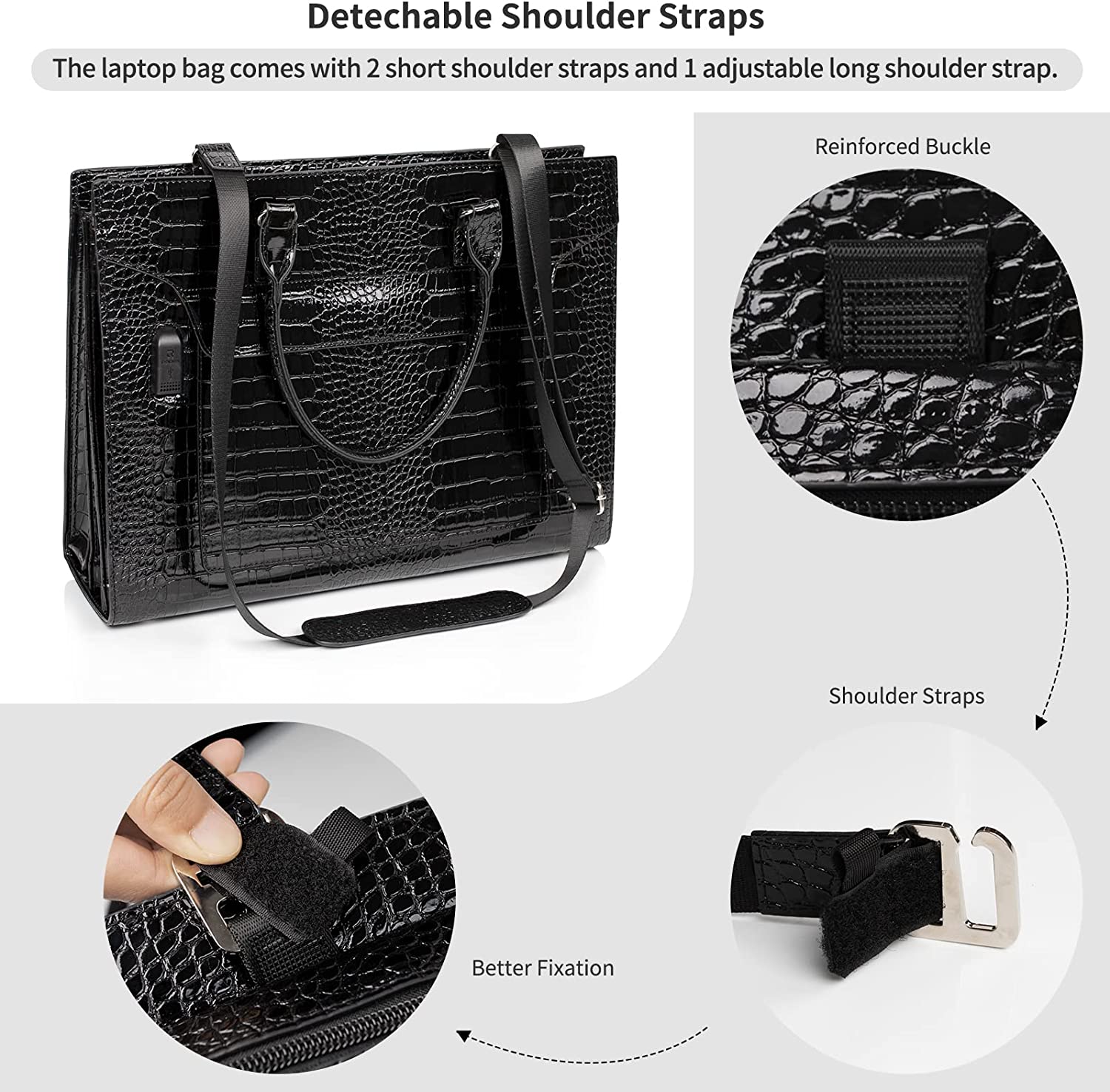 • 【Rich Carrying Methods】: Laptop tote bag for women comes with 2*short shoulder straps,1*adjustable long shoulder strap used as single shoulder bag or crossbody bag to meet your different needs. Suitable for work, business, school, shopping, airport, party, travel and other occasions as a practical women's business work bag, teacher tote bag, nursing handbag.