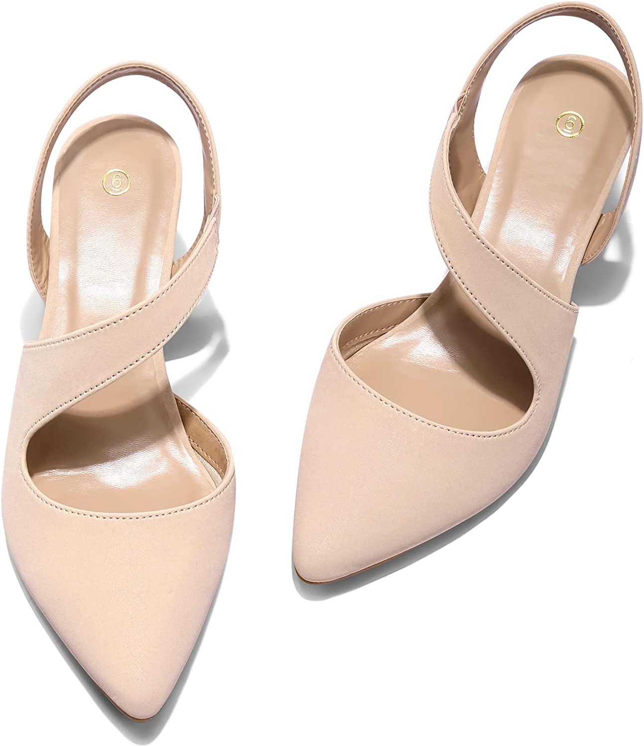 • FASHION: Women's lady pumps with slingback design and classic pointed toe create the illusion of longer legs. Slip into a relaxed and exquisite state of mind with these pumps.