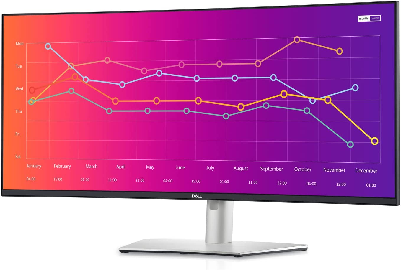Dell U3821DW UltraSharp Curved USB-C Hub Monitor - 37.52-inch WQHD (3840 x 1600) 60Hz 2300R Curvature Display, 8ms Response time, USB-C/DP/HDMI/RJ-45, Height/Slant/Tilt/Swivel Adjustability - Silver