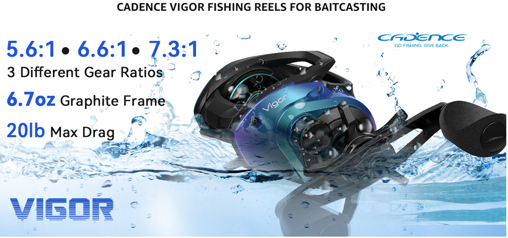 • Fast Retrieve & Versatile - The Vigor fishing reel is available in 3 different gear ratios: 5.6:1, 6.6:1 & 7.3:1 to suit any fishing need. From cranking to flipping and pitching, the Vigor reel can get the job done so that you can focus on the fish.