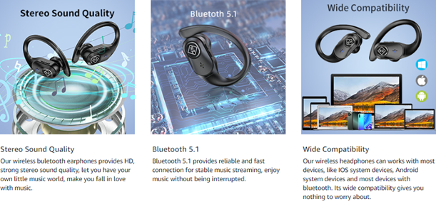 3.The ear hooks keep the earbuds firmly attached to the ear, don't worry about dropping the earphones during exercise and interrupting your sport rhythm.
