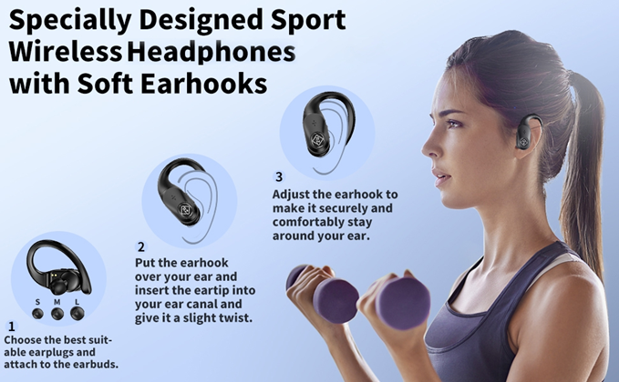 1.Our bluetooth earbuds equipped with 3 different size ear tips to meet different customer ear canal, choose one which is suit you best and attach to the earbuds.
