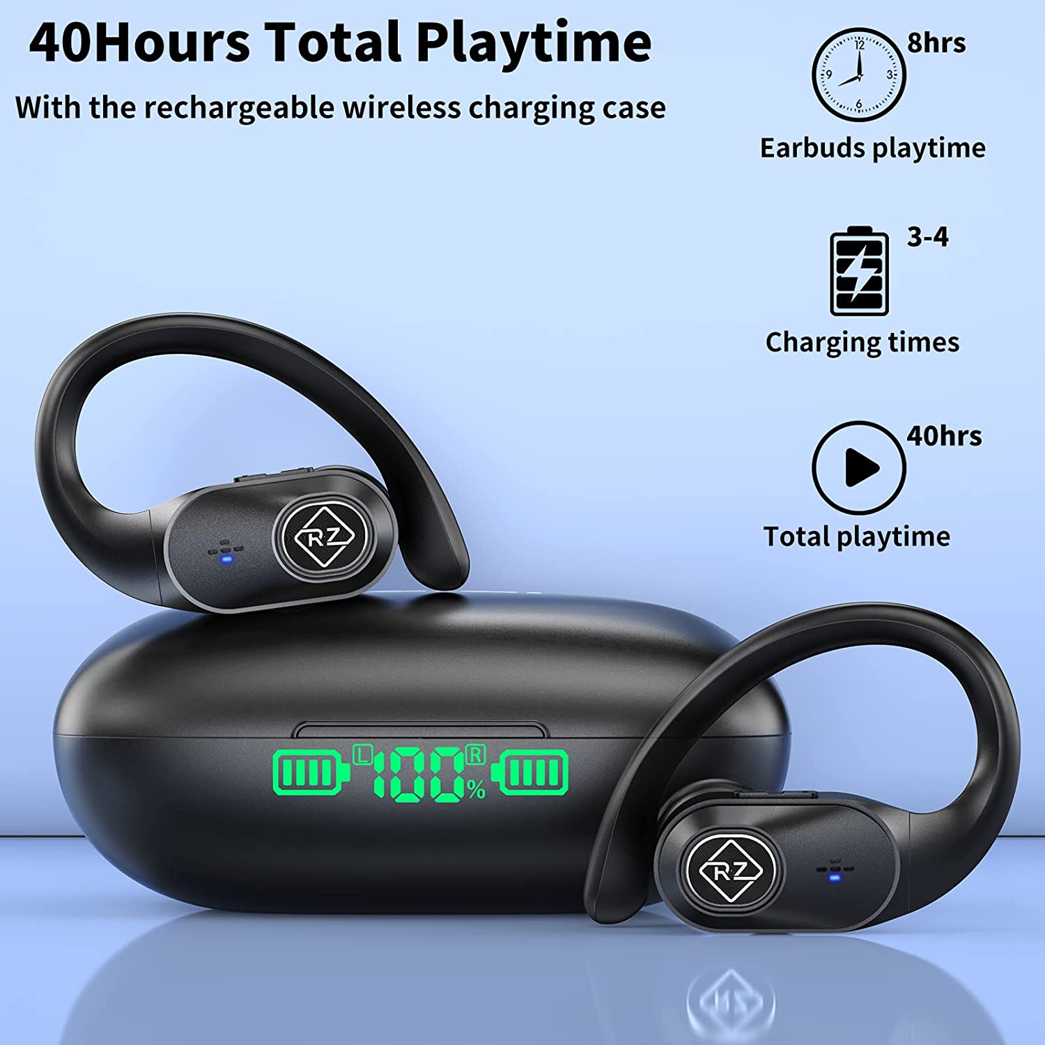 RIZIZI Wireless Earbuds Bluetooth Headphones with Wireless Charging Case and LED Digital Display 40hrs Playtime Built in Mic Waterproof Earphones with Over Earhooks Bass Sound Headset for Sport Gym