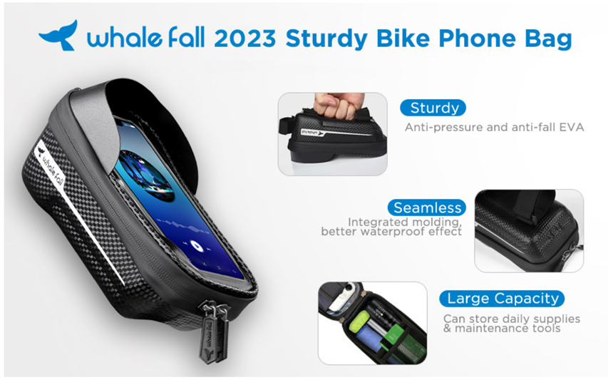 - ☔【Harder & Pressure-Resistant】All-in-one design with 3D die-casting process make Whale Fall EVA bike phone bag hard, pressure-resistant and waterproof. Therefore, this bike phone holder is durable, shake-proof, pressure-proof and non-forming. This bike bag the perfect and indispensable bike accessories.