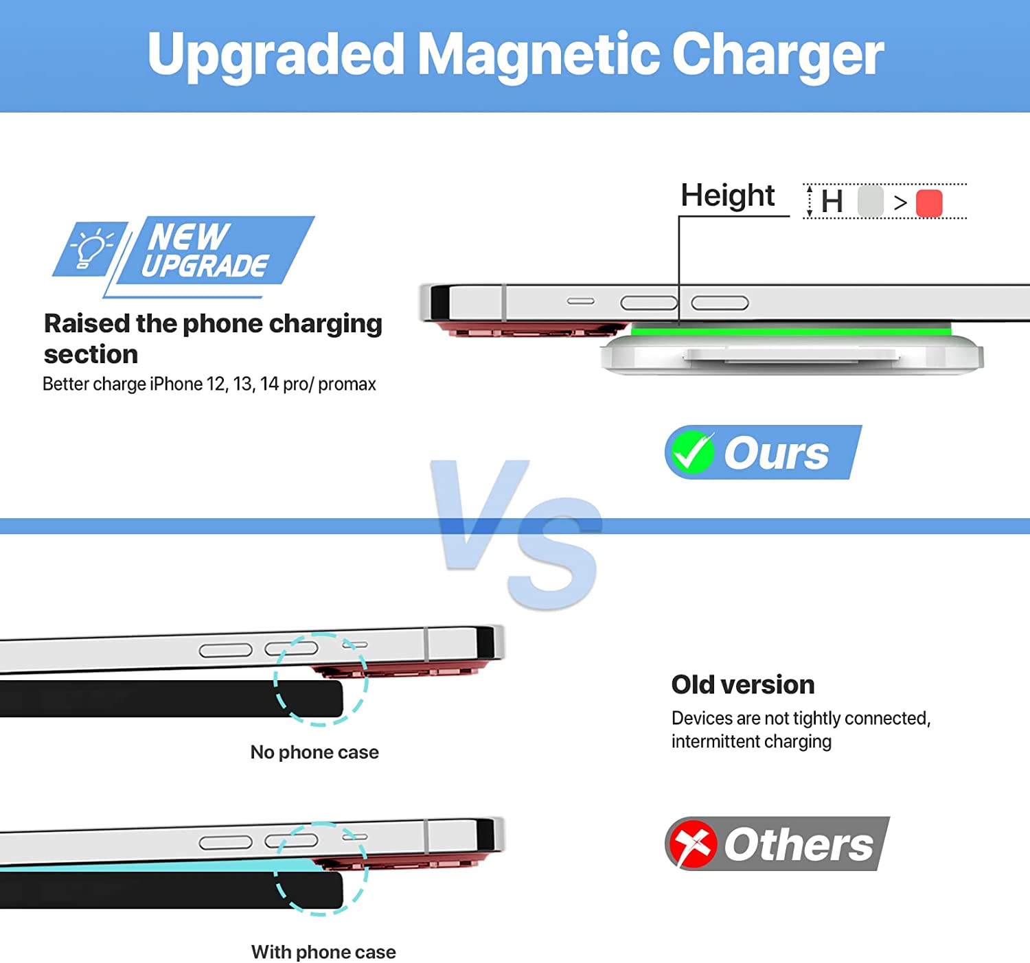 • 【Mag-safe Wireless Charger】iphone fast charging station charge more efficiently with a strong magnetic connection. Mag-Safe will find iphone itself and get to work, effectively simplifying and enhancing wireless charging.