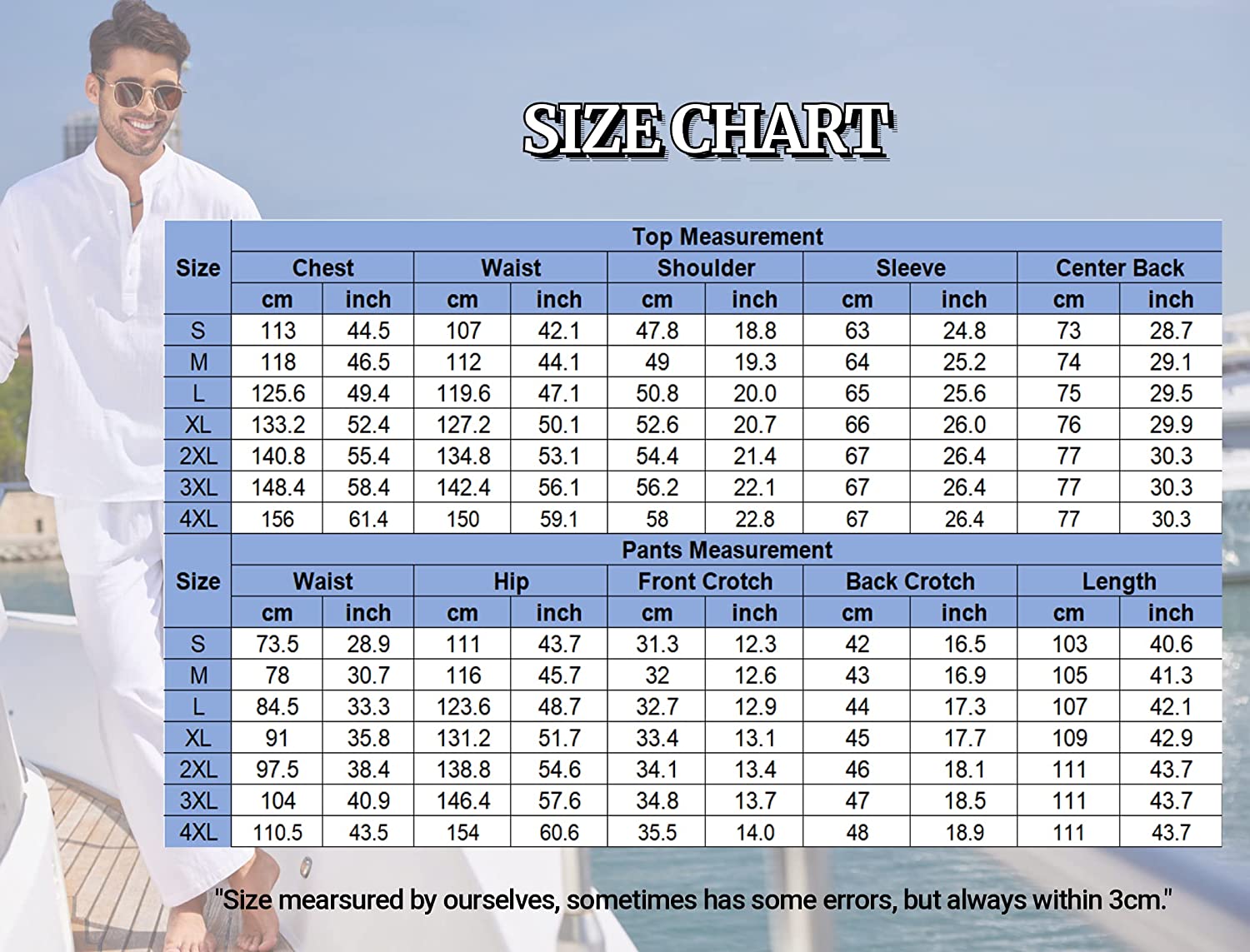 - 【GARMENT CARE】-- The 2 piece beach outfits sets machine washable and easy to maintain. Please check size chart before ordering these men’s beach cotton linen outfits to ensure accurate fitting.