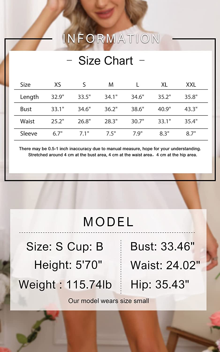 ?Feature: The casual mini dress is designed with gathered neckline and button. Plus, the sheer puff sleeve and the sheer back design adds a bit of charm and sexy to the dress. The dress cinches at the waist with its smocked waistband to accentuate your curve.