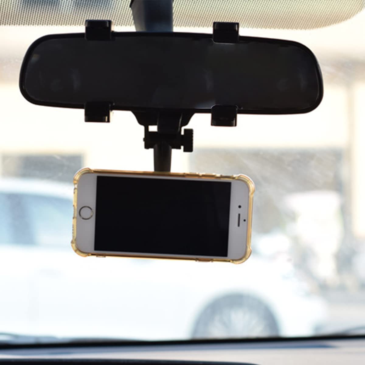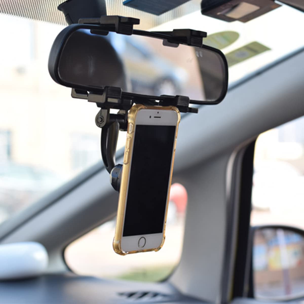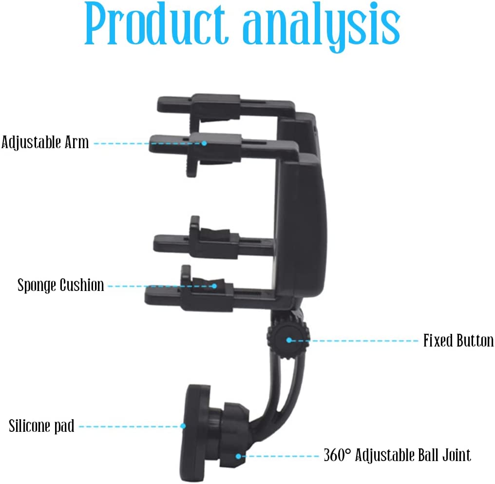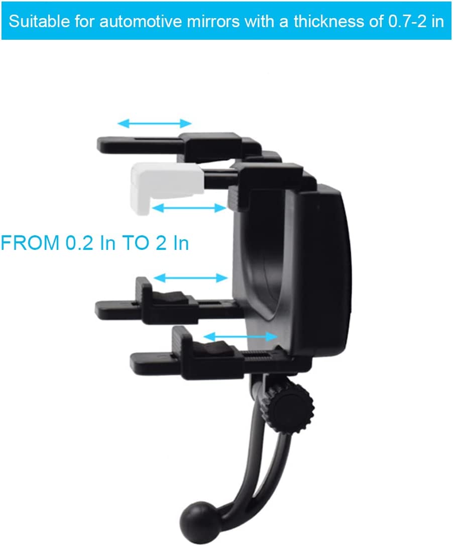 • 【FOR ALL REAR MIRRORS】: Our large rearview mirror phone holder is universal for car rearview mirrors with a thickness of 0.7-2.0 inches and a height of 2.1-3.1 inches. The retractable clamp arm makes it very widely compatible and you don't have to worry about your mirrors not fitting. You can use it to navigate, watch videos, make video calls, live stream, record videos, and more. It is very convenient and will not interfere with your driving vision.