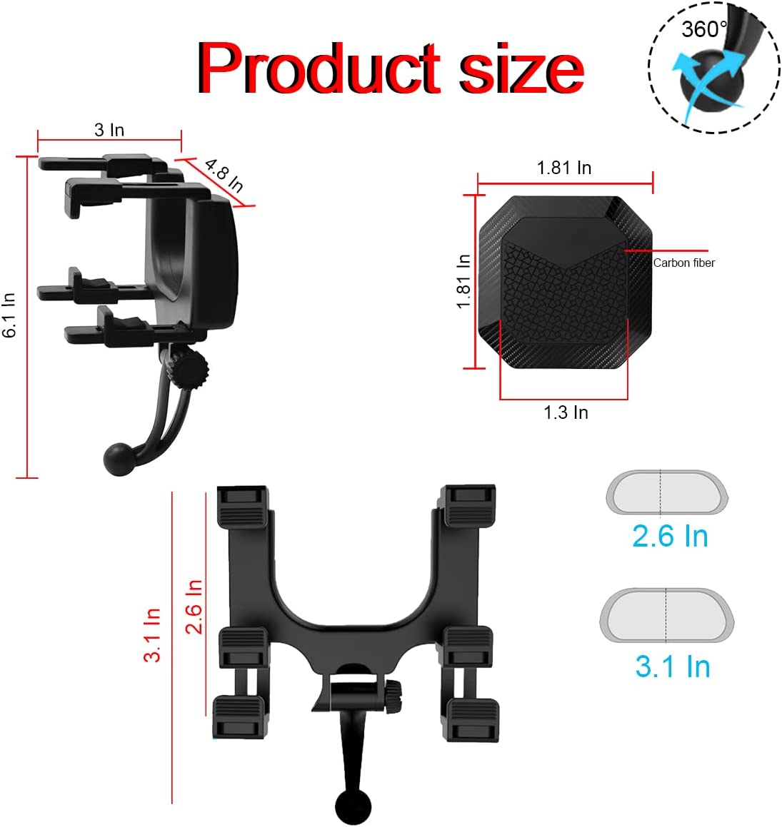 • 【4 N50 STRONG MAGNETS】: The carbon fiber strong magnetic phone holder has four standard N50 strong magnets built in, and its magnetism can reach about 3600 gauss. The super suction makes your phone can be firmly fixed on the rearview mirror, it will never wobble or fall off easily. It can even hold the weight of 7 cell phones, even if the road is bumpy and your phone will be very safe there.