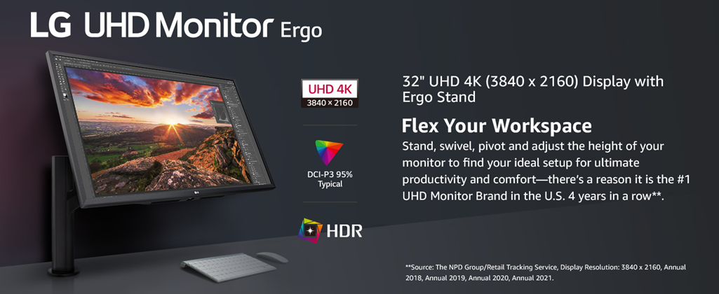 32UK580-B.AUS 32” UHD 4K VA Monitor with Ergo Stand FPO