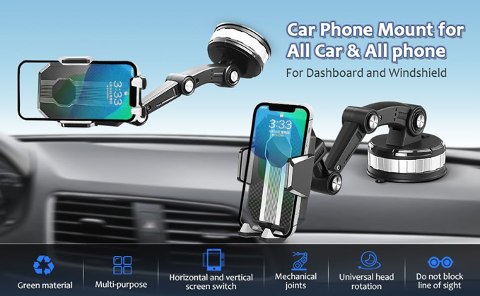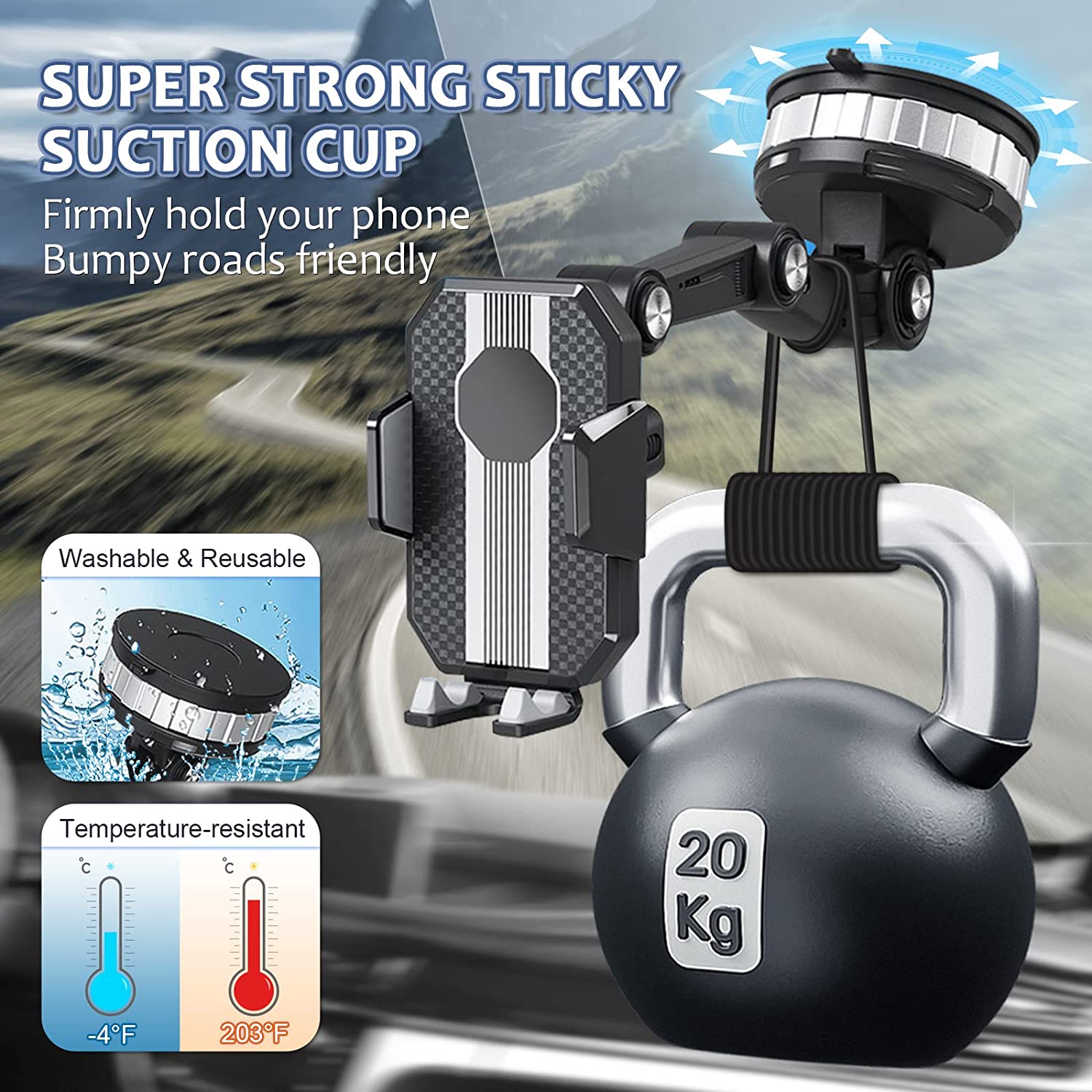 Cidsducac Phone Mount for Car, Dashboard & Windshield Universal Car Mount Phone Holder, Anti-Shake Stabilizer Cell Phone Holder Car Accessories for All Phones, Black