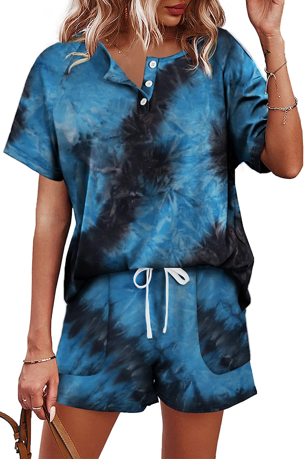 WIHOLL Two Piece Outfits for Women Lounge Sets Button Down Top and Shorts Set Sweatsuits with Pockets
