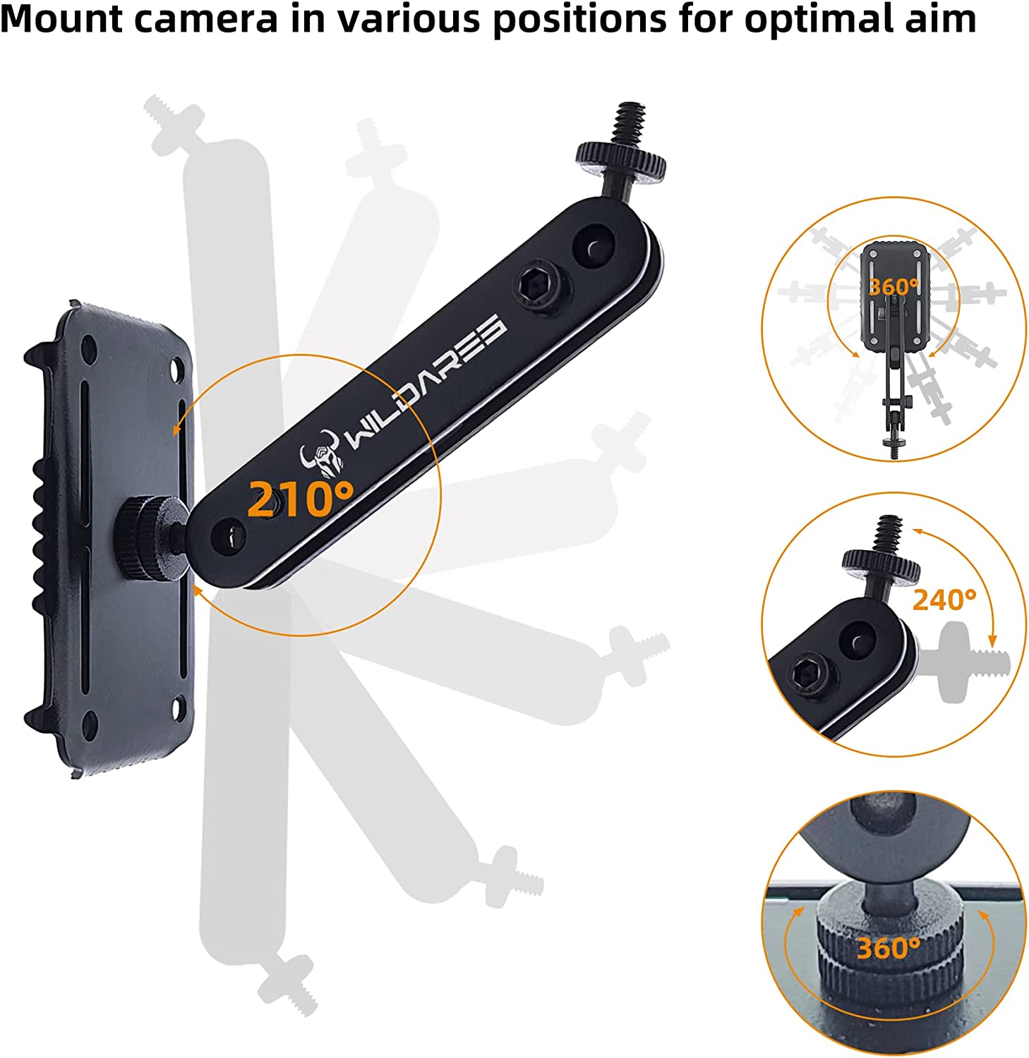 • ✔【SIMPLE & HANDY】WILDARES camera holder give you the confidence to aim the camera in almost any direction quickly and securely.Just Secure the holder first,then Srew your camera and Adjust camera angle,last Tighten the bolts with included hex key wrench.