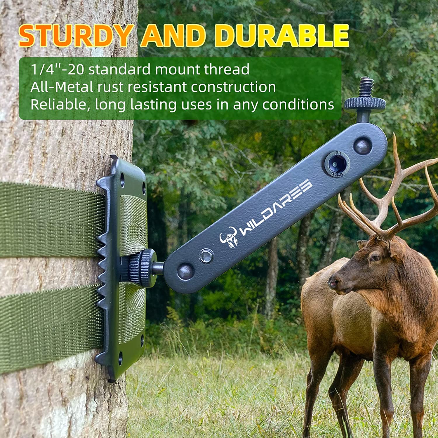 WILDARES Trail Camera Mounting Bracket,Hunting Pro Gear Acccessery, Wildlife Cam Mount, Deer Monitor Mount, Hunter Camera Kit,Nylon Fiber Strap,Heavy-Duty Metal,Black,5.9x3.7x2.5 inch