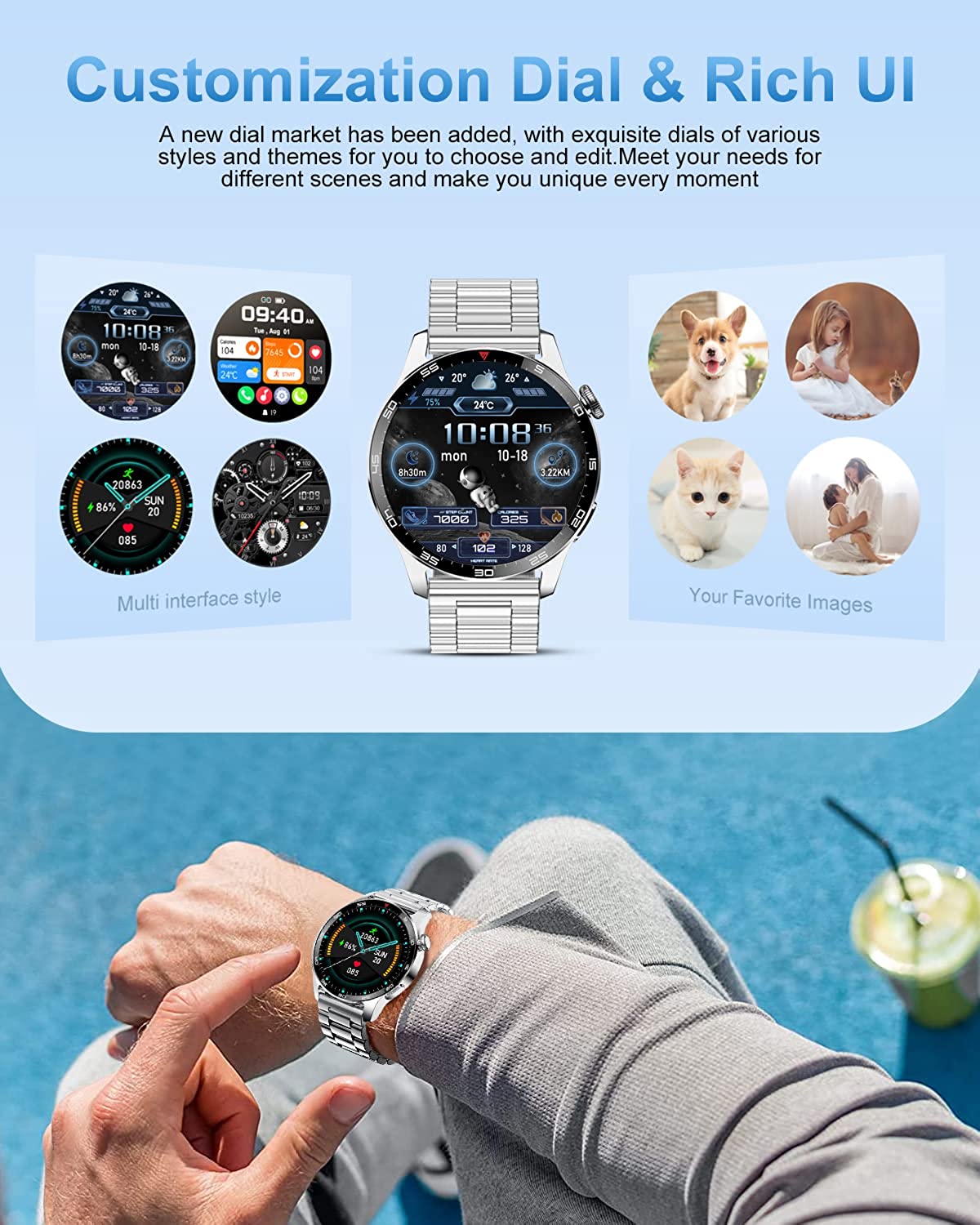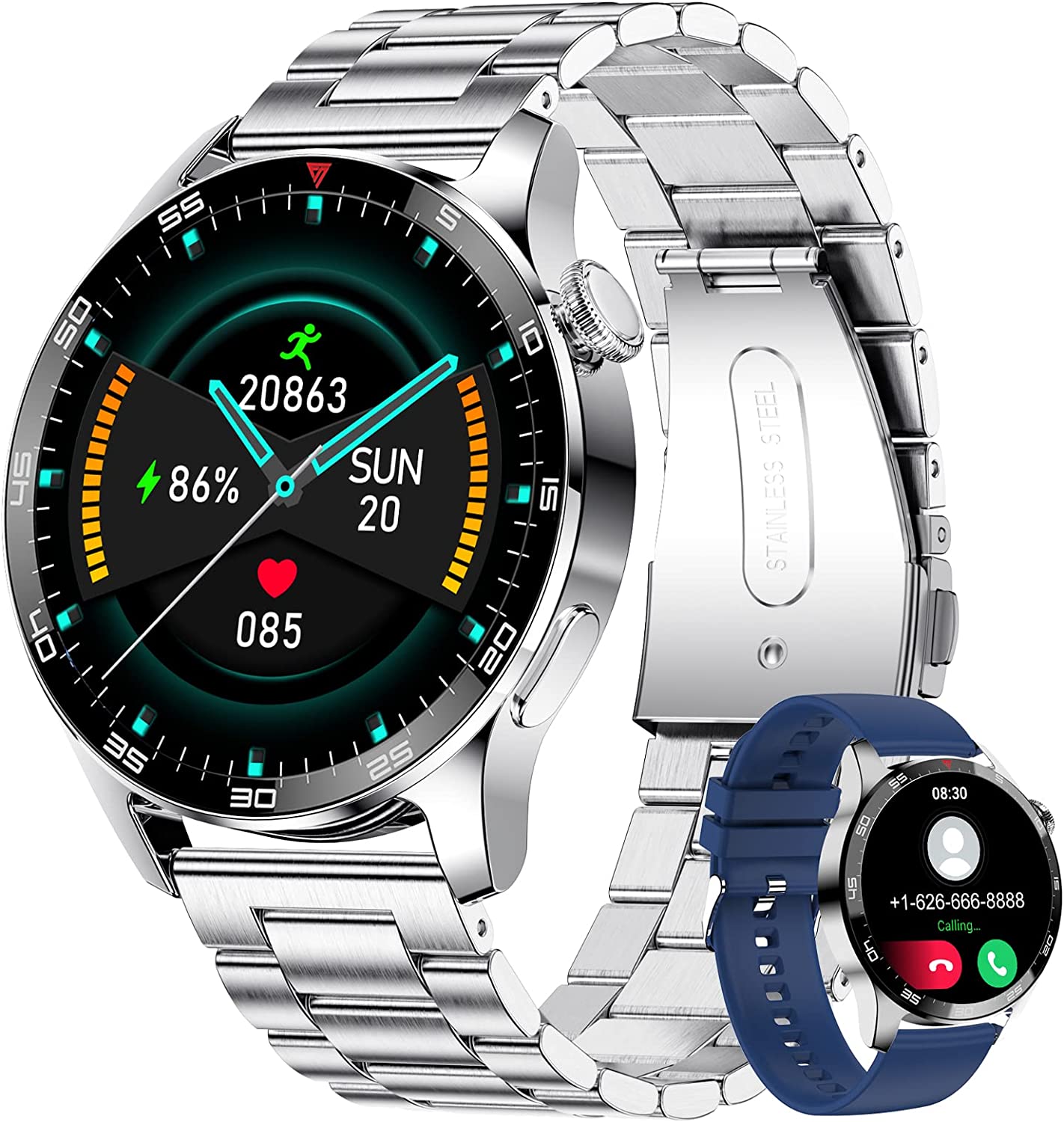 • 【IP67 Daily Waterproof & Multiple Sports Mode】This smartwatch for men has IP67 daily waterproof grade and has several sports mode(walking, running, cycling, camping), which make it able to withstand sweat, rain and water droplet splash. (Not for Swimming, Diving)