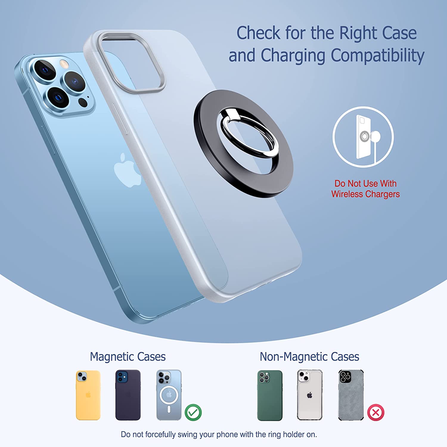 • MagSafe Charger Friendly: Different from other finger ring holders, the magnetic finger ring holder can be removed and installed at any time, so when you need to use the MagSafe for charging, you just need to remove the holder