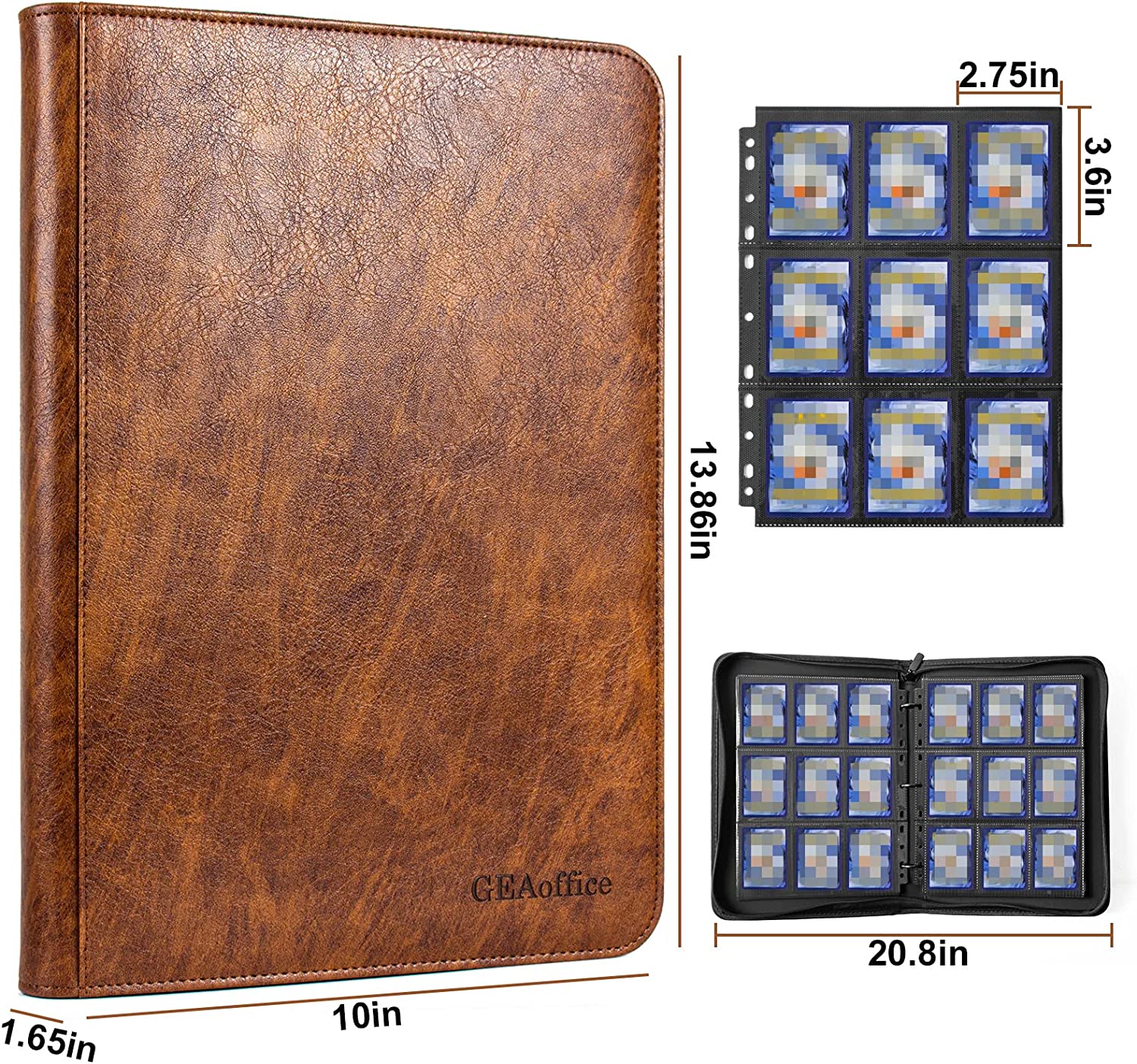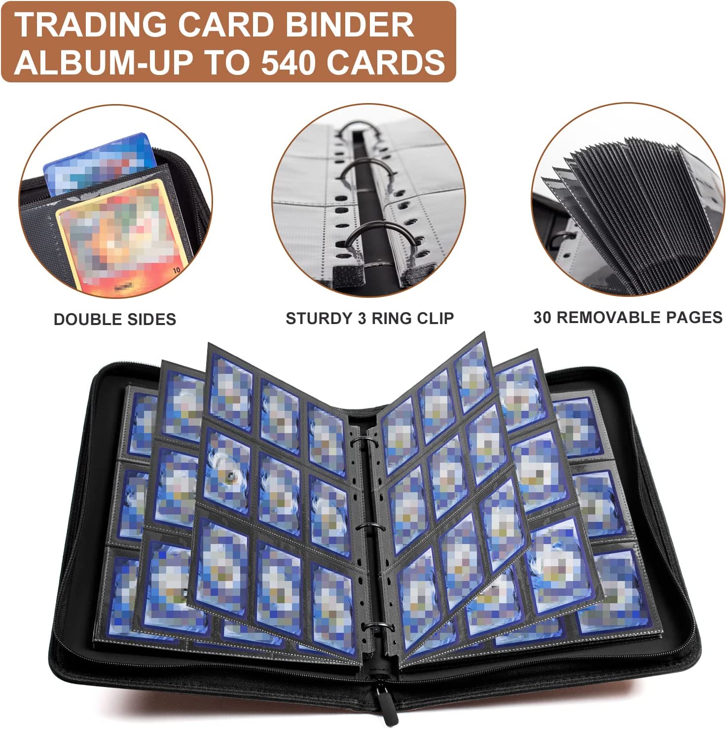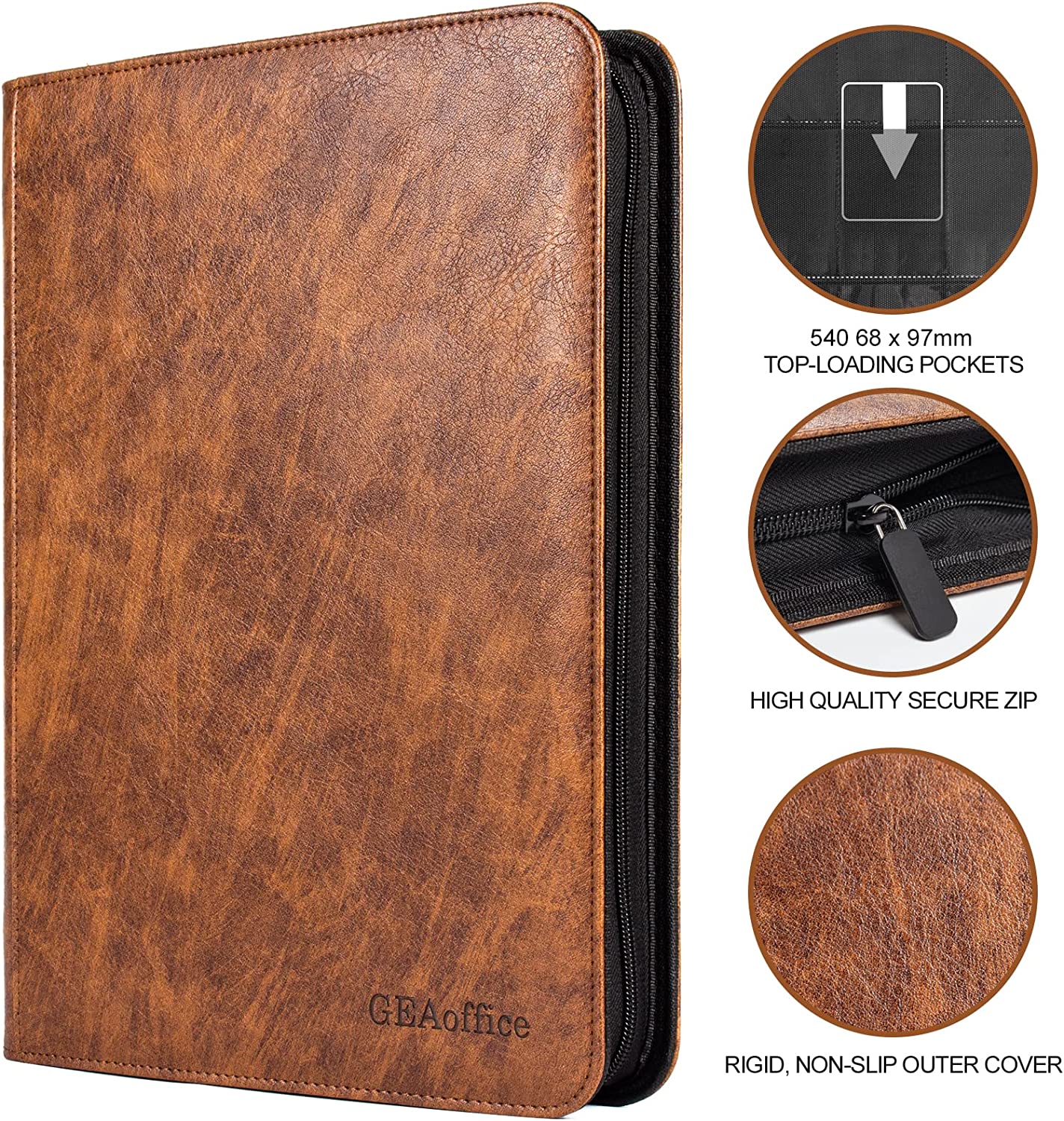 GEAoffice Premium Zip Card Binder - 9 Pocket Trading Card Album Folder with 30 Removable Sleeves- 540 Top Loading Pockets Collector Binder for TGC, MTG, Baseball Cards, Yugioh