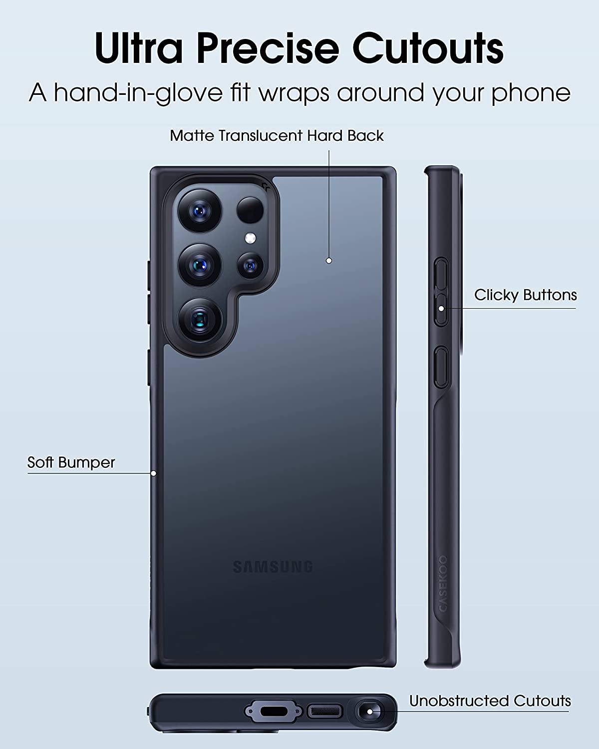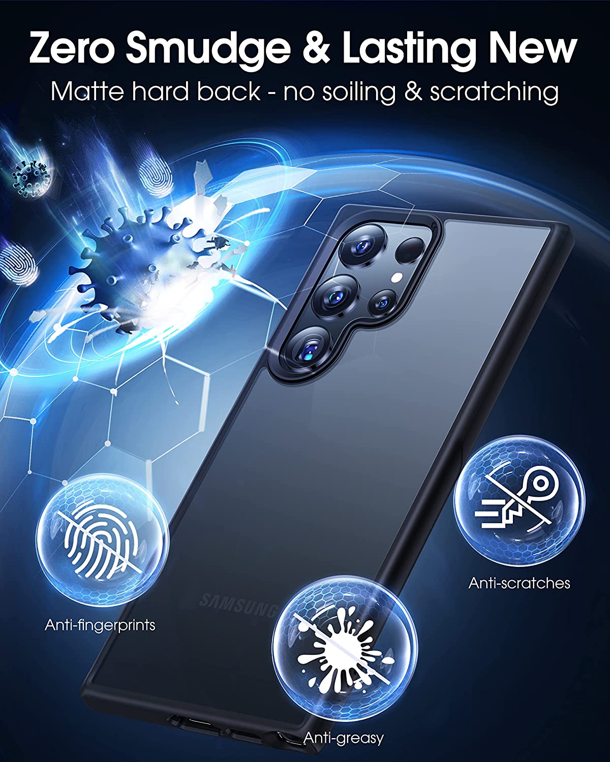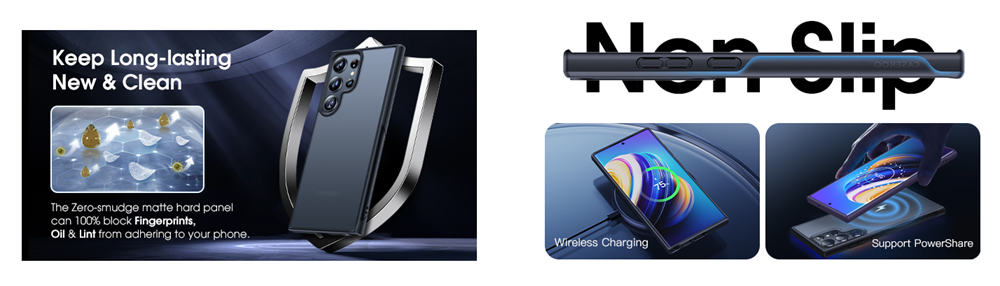 • 【Zero Smudge, Lasting New】Thanks to the zero-smudge matte hard backplane, it is sturdy, scratch-resistant and it stop 100% of fingerprints, oil & lint from sticking to your Samsung S23 Ultra case while providing a silky matte touch feeling.