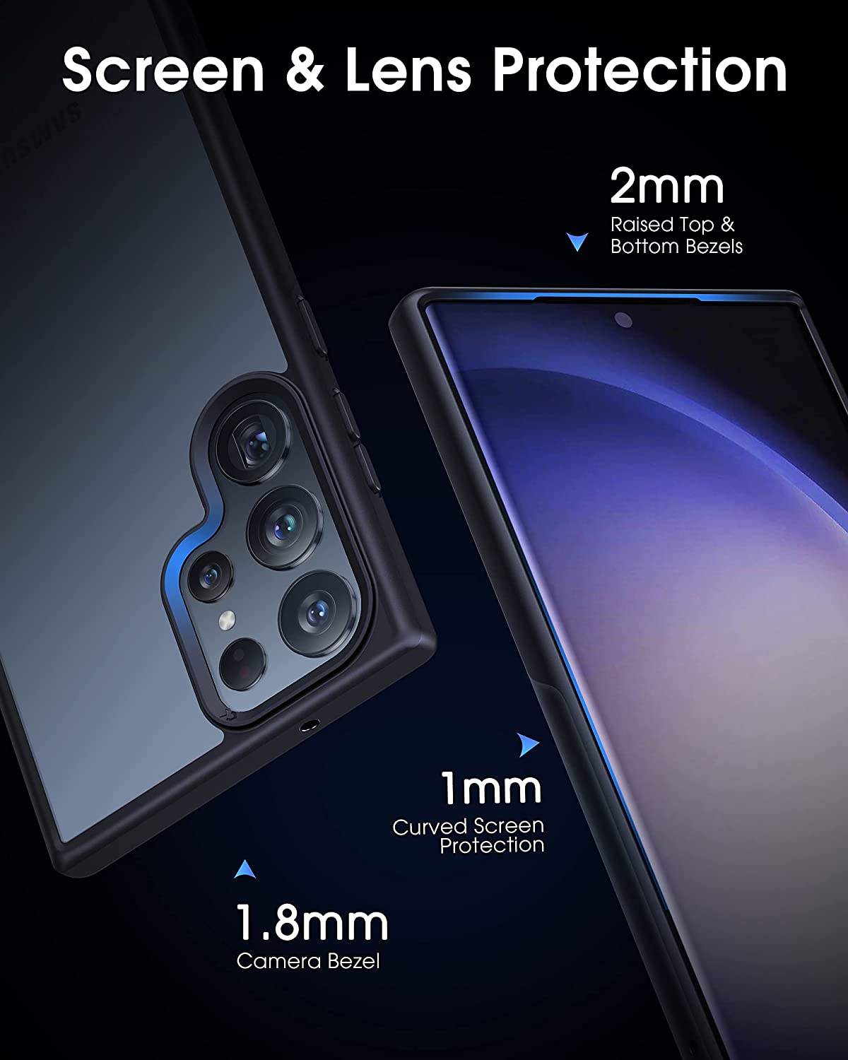 • 【Raised Screen & Camera Protection】We raised the top and bottom bezels of the curved screen by 2 mm, and raised the bumpers on both sides by 1 mm to better protect your curved screen without affecting use the side screen. In addition, we also designed a 1.8mm raised protection for the camera. It's time to say bye to scratches completely!
