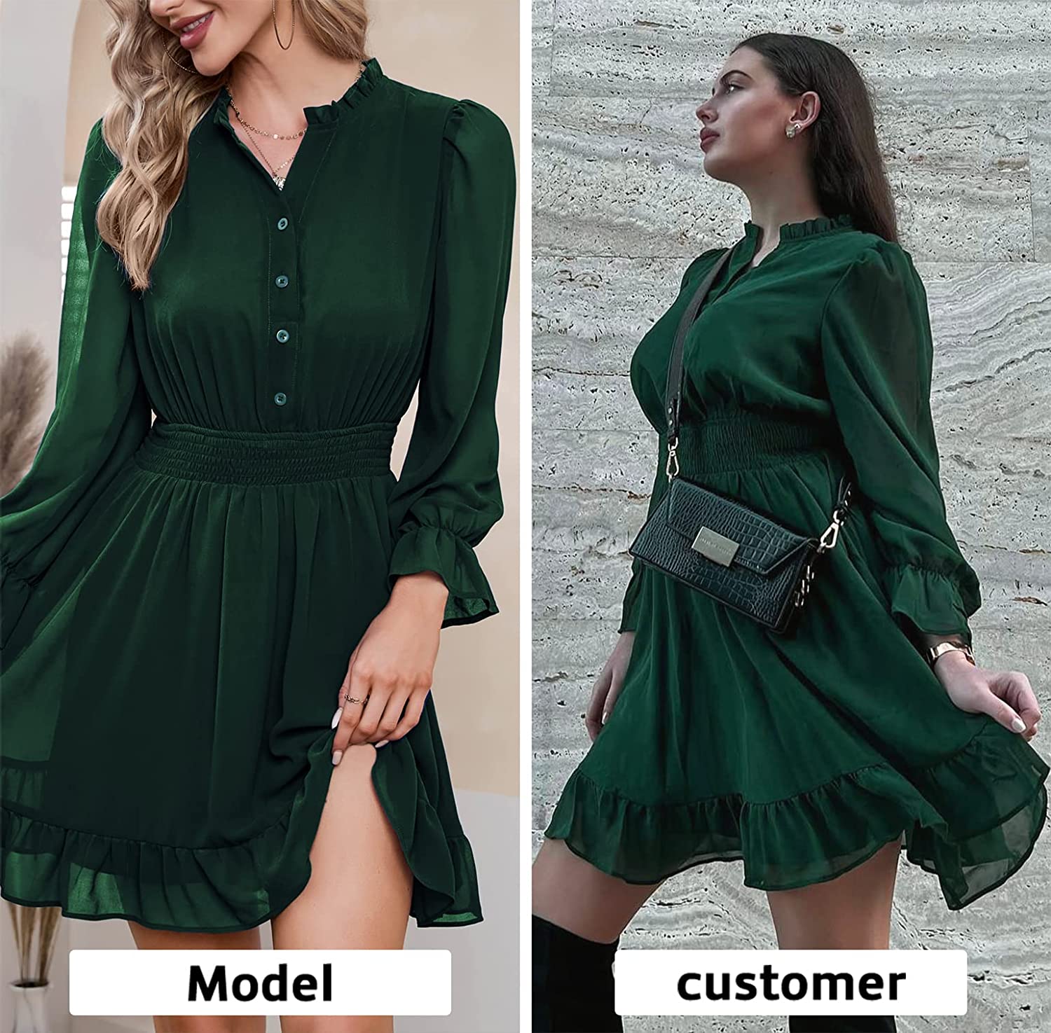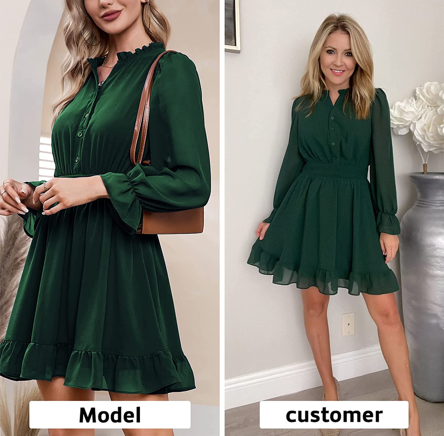• Feature: The mini dress is designed with gathered neckline and button. Plus, the sheer puff sleeve and the sheer back design adds a bit of charm and sexy to the dress. The dress cinches at the waist with its smocked waistband to accentuate your curve.