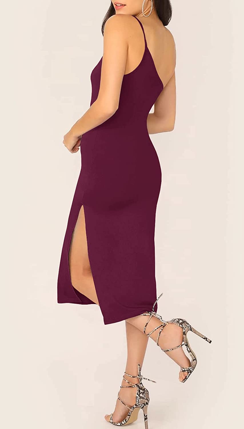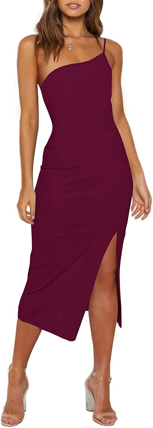 Ofenbuy Women's One Shoulder Bodycon Dress Spaghetti Strap Split Party Cocktail Dress
