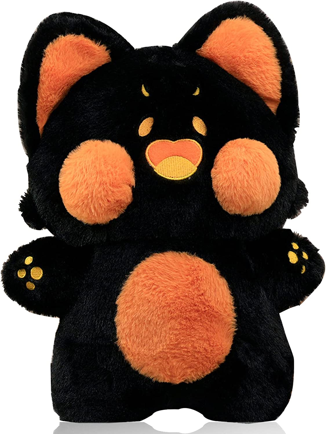 PERUKOYO Cat Plush Toy Cat Stuffed Animals Pillow Kawaii Plushie, Soft Plush Doll Black Cat Plushie Cat Pillow for Boys Girls
