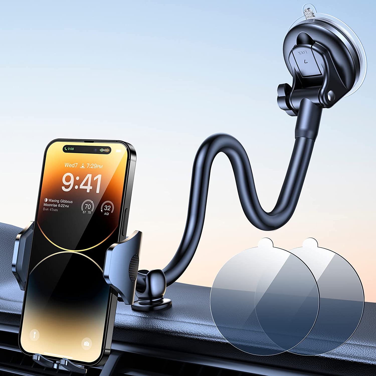 VICSEED Universal Phone Mount for Car [Strong Suction] [Flexible Durable Long Arm] Gooseneck Car Phone Holder Mount Windshield Dashboard 360 Rotation Cell Phone Holder Car for All Mobiles & Cases