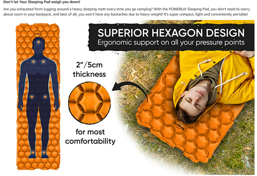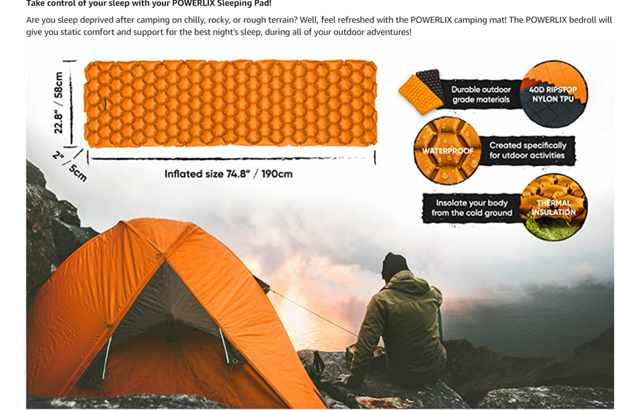 • 100% Refund/Replacement Warranty: PowerLix guarantees to have your back! We want you to be nothing but happy with your new, top of the line, camping bed! Our professional customer service is therefore here to do whatever it takes to guarantee your satisfaction. That's why your purchase comes backed with our incredible warranty; anytime, any reason, no questions asked!