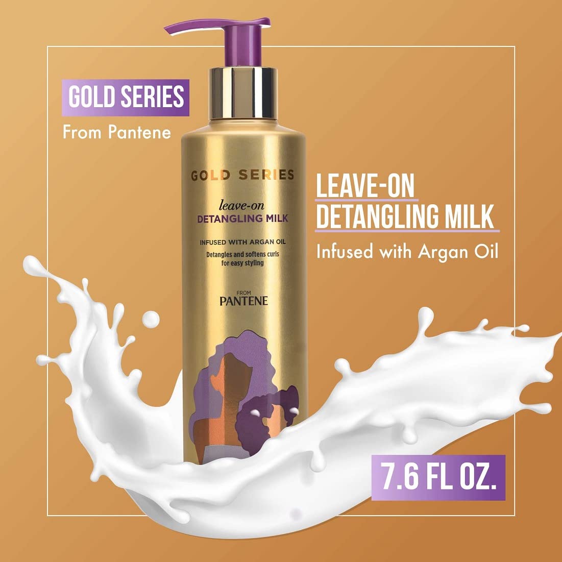 Experience the gold standard in moisture with Pantene Gold Series Leave-On Detangling Milk. Thoughtfully developed by Black scientists and perfected by Black hair stylists, every bottle of our sulfate-free, dye-free formula is infused with Argan Oil. It helps detangle and soften curls and coils, smoothing the cuticle for easier combing. Also try Gold Series from Pantene Moisture Boost Shampoo and Conditioner from the Gold Series Collection, for optimal hair health.