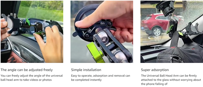 - Multi-function Car Phone Mount: The latest style in 2023.It has a super suction cup, which can be adsorbed on any smooth object. It is applied to most cars, pickup trucks, SUVs, taxis. A perfect assistant for Uber, Lyft drivers.If you like to travel by car, it will perfectly record the scenery along the way, just adjust the angle of the mobile phone holder before driving.It can be adsorbed on any flat place, windshield, window glass, or sunroof glass, etc