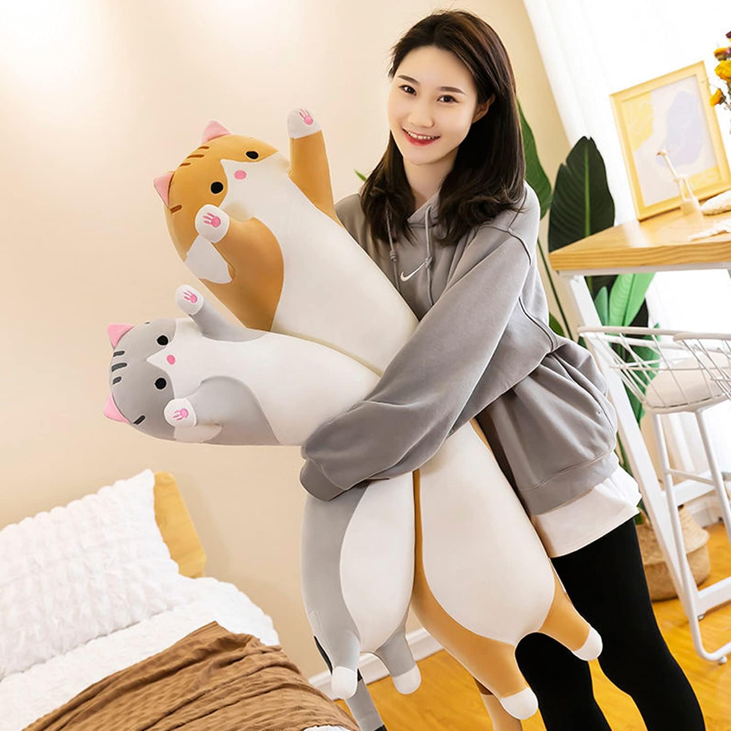 Giant Cat Pillow Plush Cartoon Kitty Sleeping Hugging Pillow, Cuddly Soft Long Kitten Body Pillow Doll Cat Cushion Toy for Kids Girlfriend (Gray, 50cm/19.68inch)