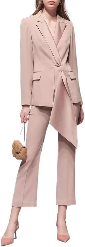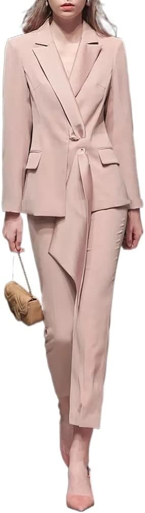 QJPAXL Solid Two Piece Set Womens Notched Collar Long Sleeve High Waist Wide Leg Pants Female Sets Fashion Clothing (Color : D, Size : XS Code)