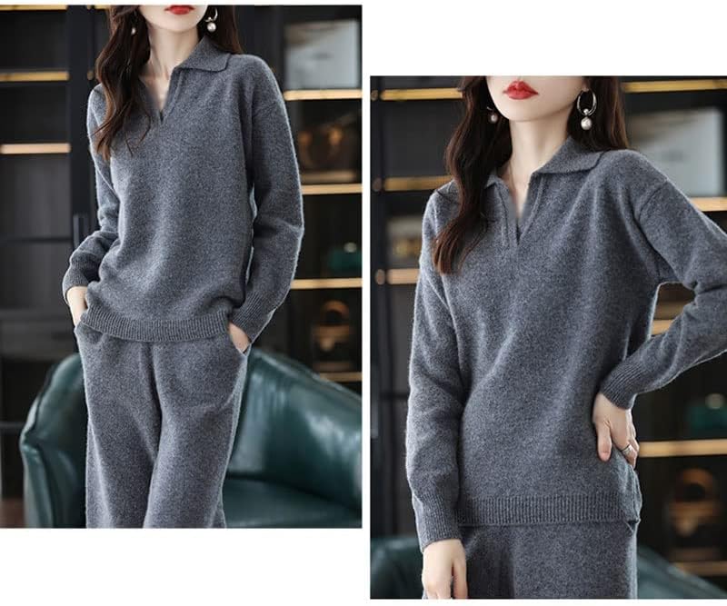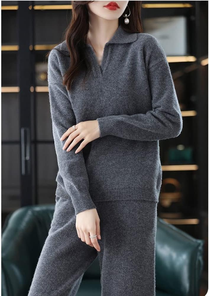 Walnut Casual Wide-Legged Pants Knitted Suit Autumn and Winter Loose Wool Sweater Top High-Waisted Pants Two-Piece Suit (Color : D, Size : S Code)