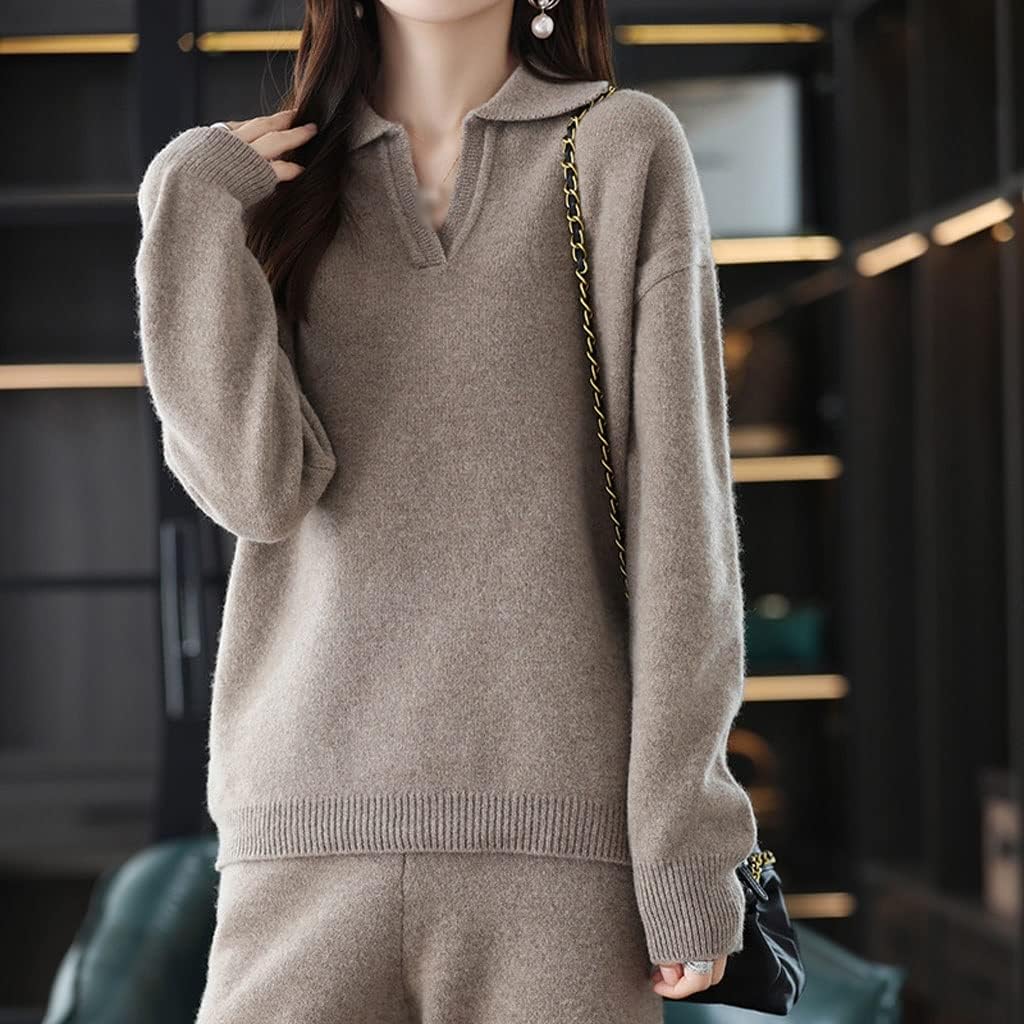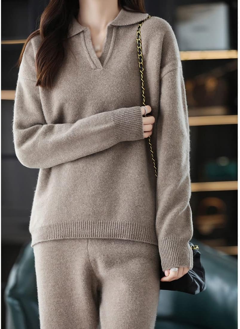 Walnut Casual Wide-Legged Pants Knitted Suit Autumn and Winter Loose Wool Sweater Top High-Waisted Pants Two-Piece Suit (Color : D, Size : M Code)