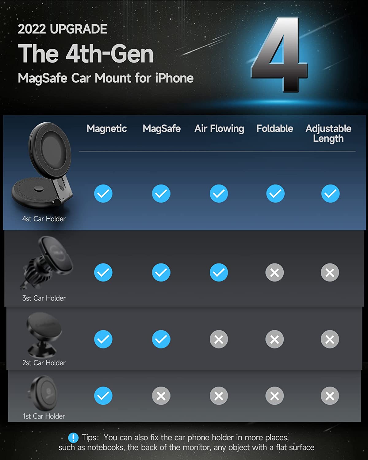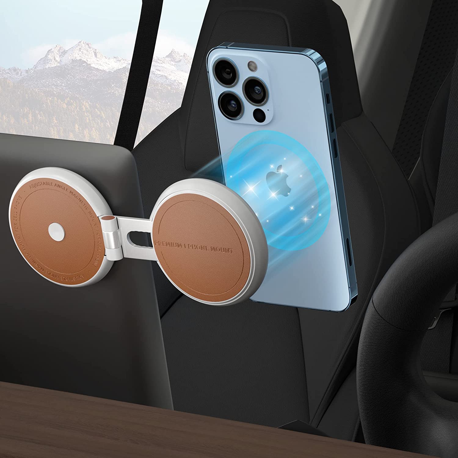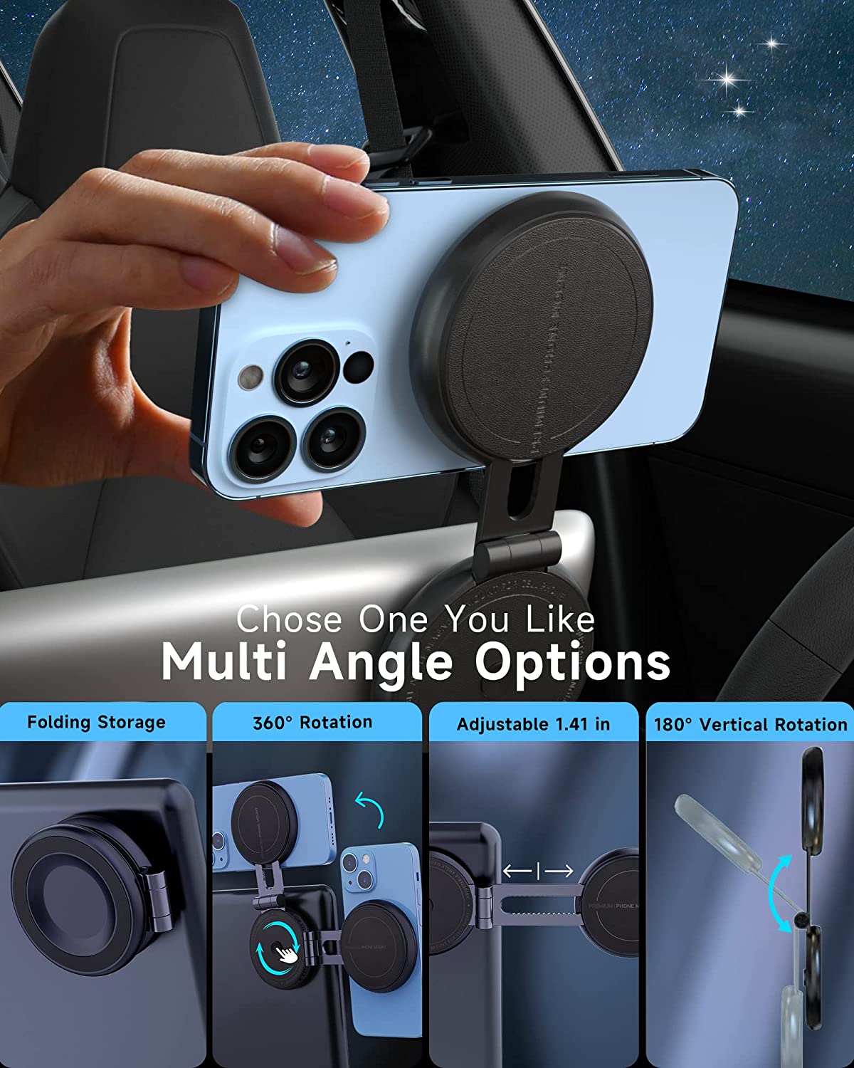 • ?【Upgrade Car Phone Mount】 Tesla phone mount With 24 built-in strong magnets, help this cell phone holder holds your phone firmly and stably even on bumpy roads. The base has 2PCS 3M adhesive pads to allow this phone holder to mount on the dashboard or back of the central control screen firmly without worrying about falling out. (NOTE: If your iPhone 12/13/14 has a thick case or you use other iPhone or Android phones, please stick the metal ring on the back of your phone or case.)