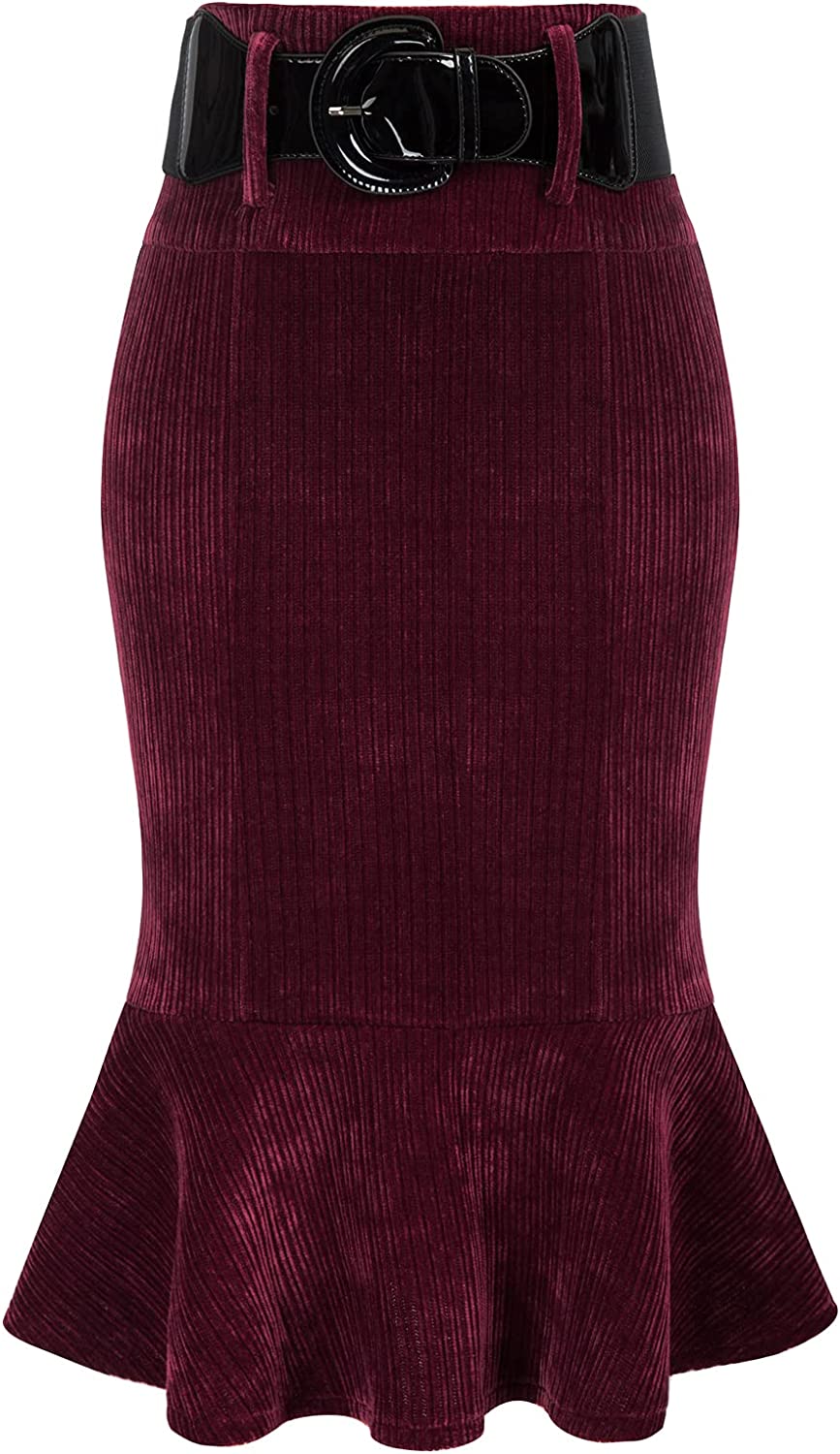 Belle Poque Women’s High Waisted Peplum Midi Pencil Skirt Work Business Skirts with Belt