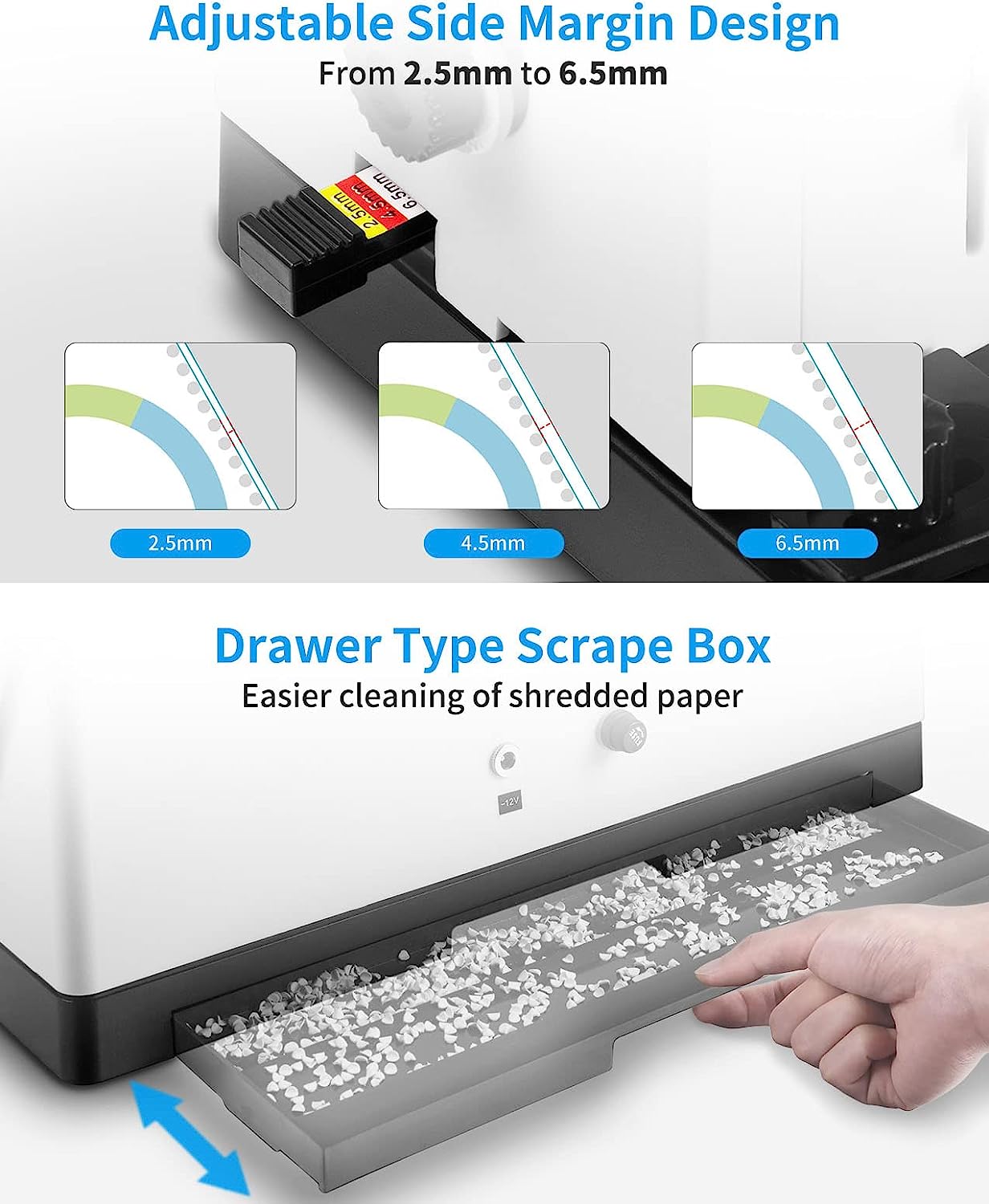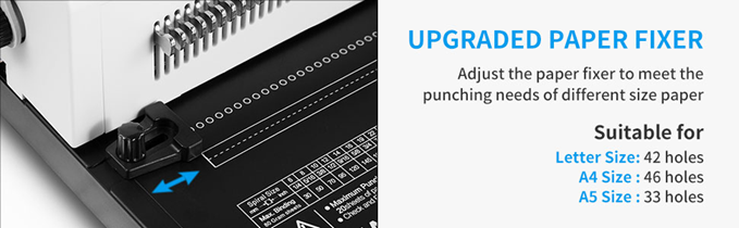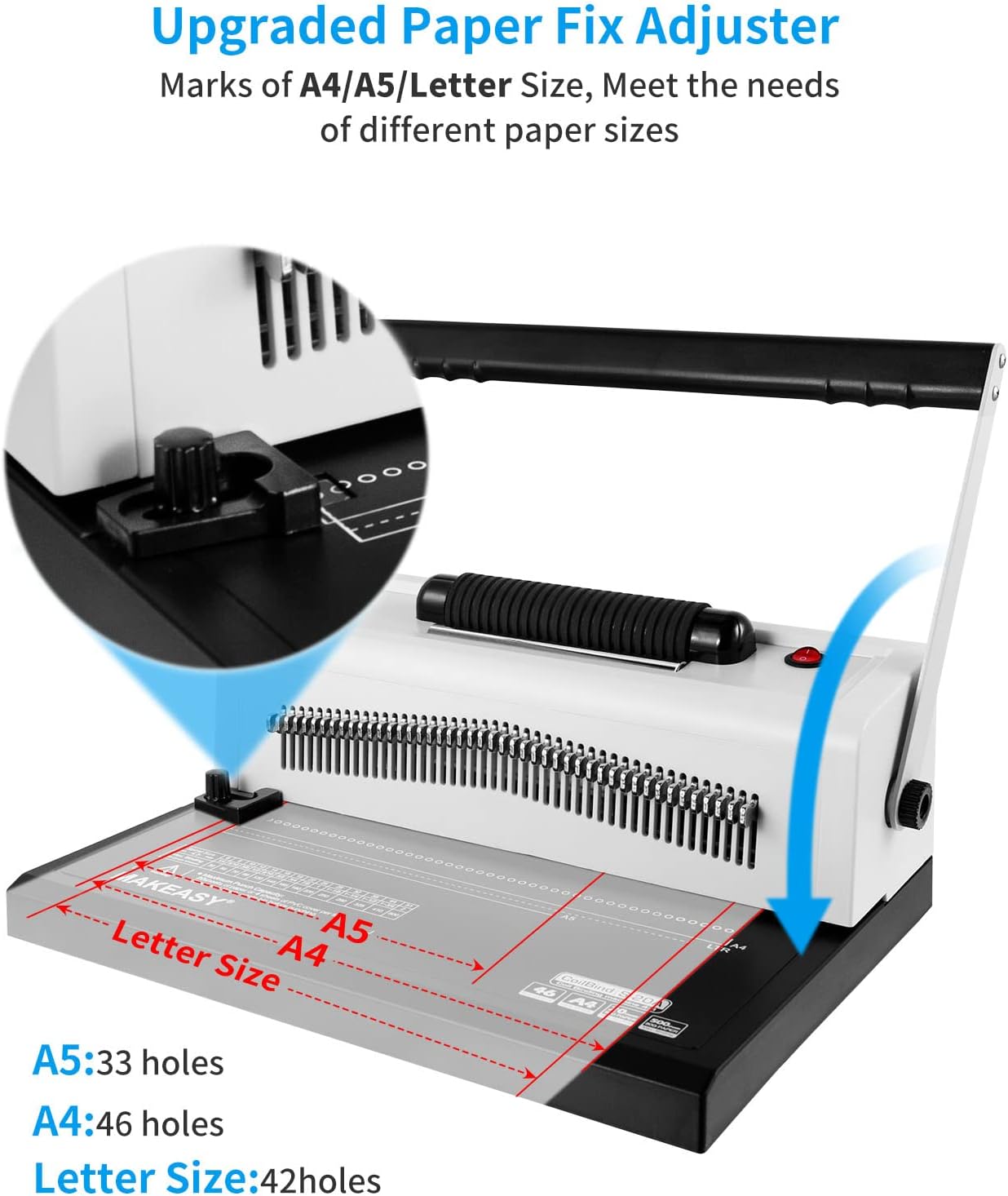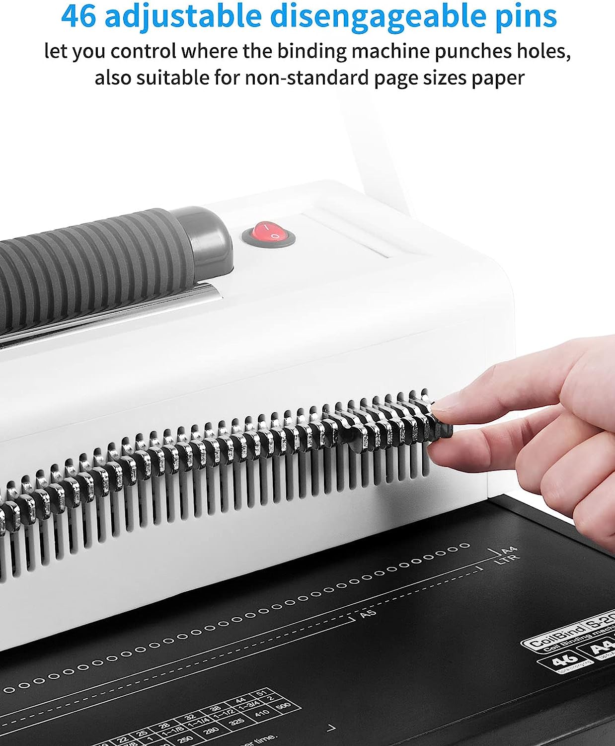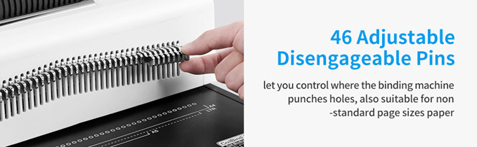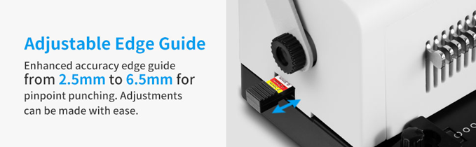 • ?【ADJUSTABLE MARGIN】With adjustable side and edge guide, this machine also ensures a precise alignment with each document your bind, and you can easily customize the paper margin: 2.5mm, 4.5mm, 6.5mm to create professional-looking works.