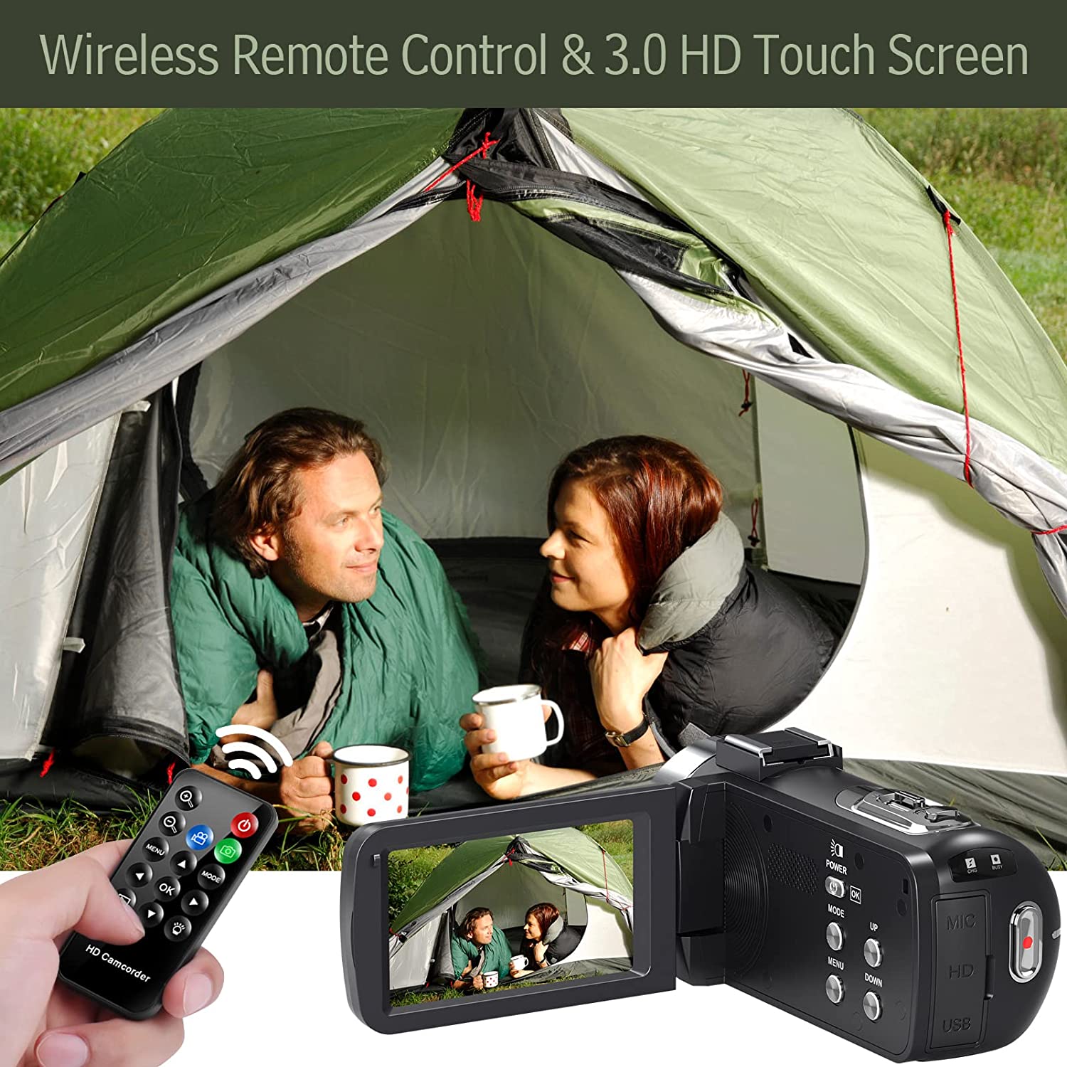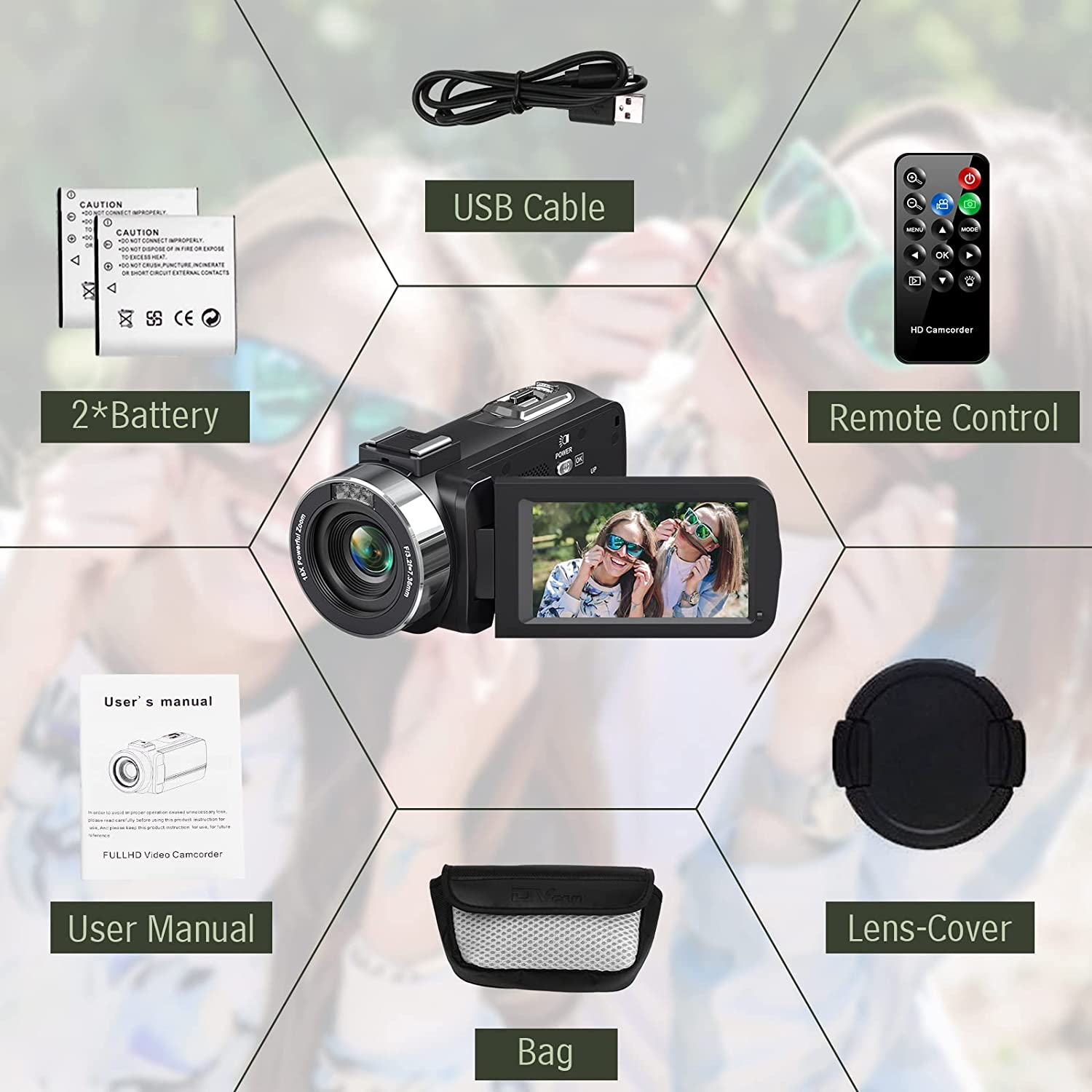 - 【2*Batteries & Remote Control】 The video camera is equipped with two rechargeable batteries to meet your daily needs without the need to worry about insufficient power.This video camera camcorder also comes with a remote control so that you can control it while it is sitting on a tripod. It will be very useful when you want to take family pictures without anyone being left out.