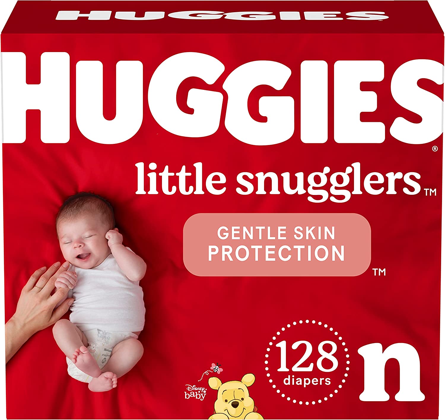 • Bundle includes: Huggies Little Snugglers Newborn Size (128ct) and Huggies Natural Care Sensitive Baby Wipes, Unscented, 12 Flip-Top Packs (768 Wipes Total)