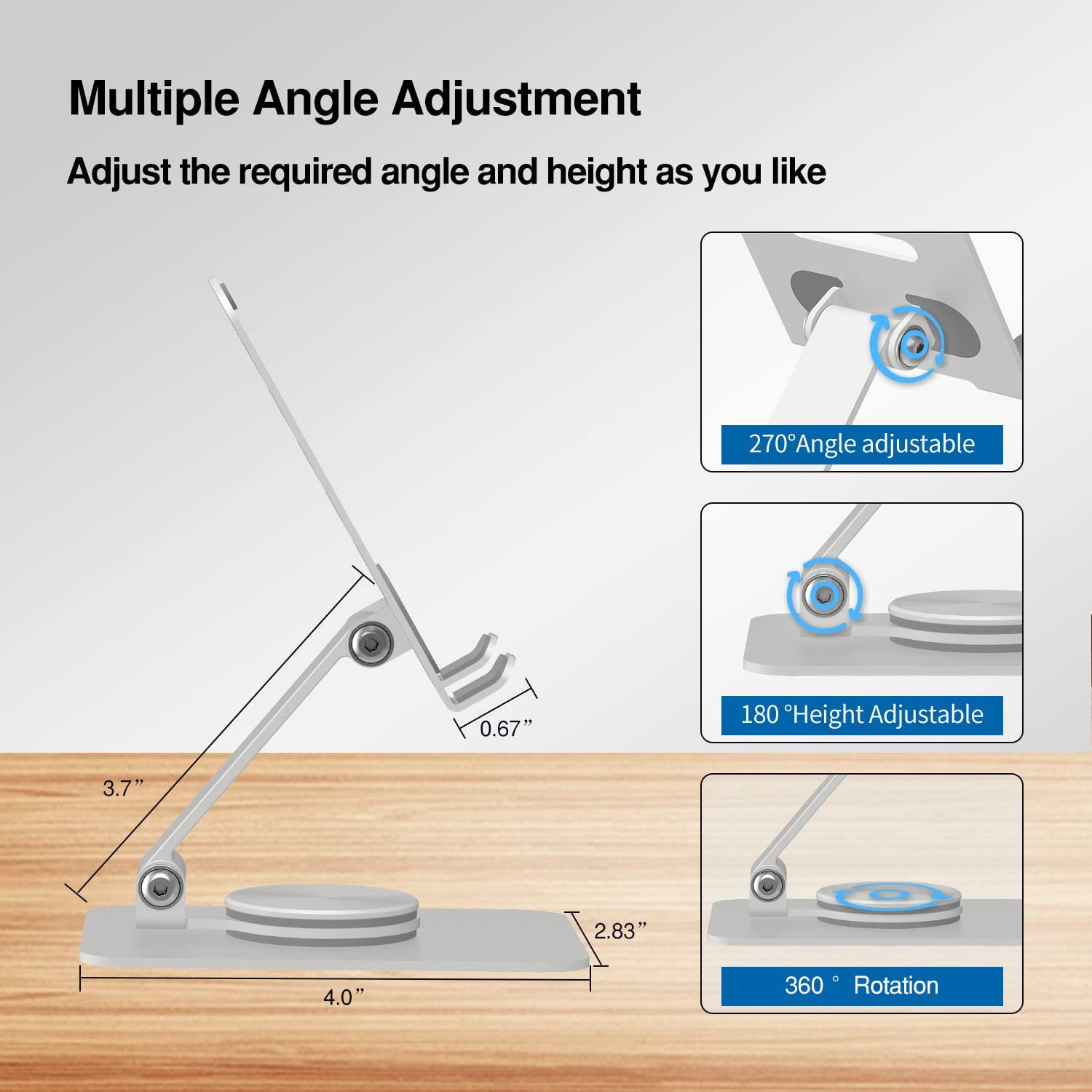 [Multiple Angle Adjustment] : The height and angle of this 360 rotation phone stand can be adjusted, this foldable phone stand provides you comfortable view and reduce neck & back strain